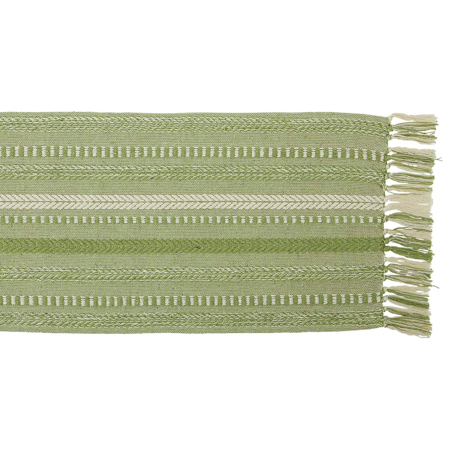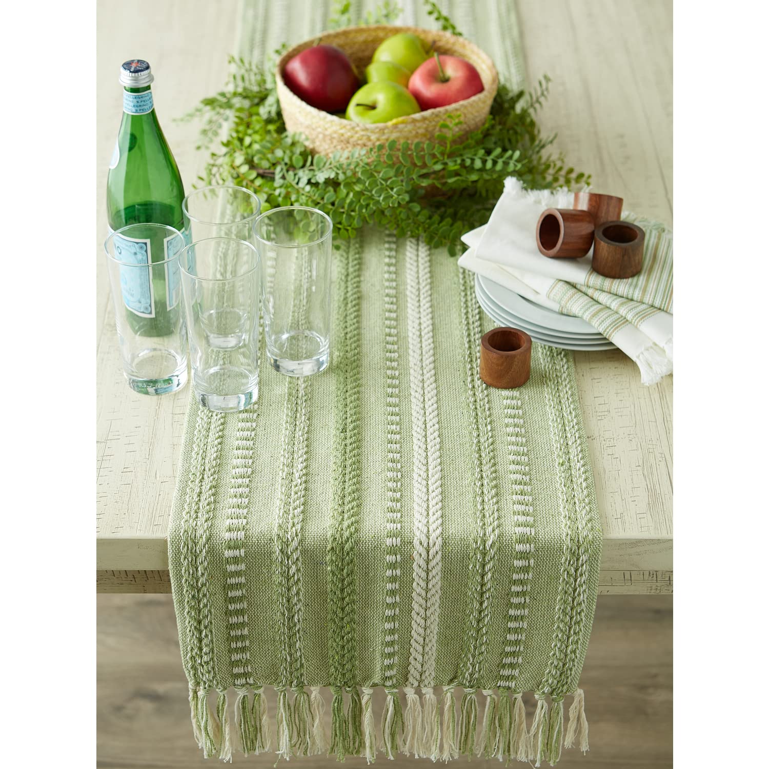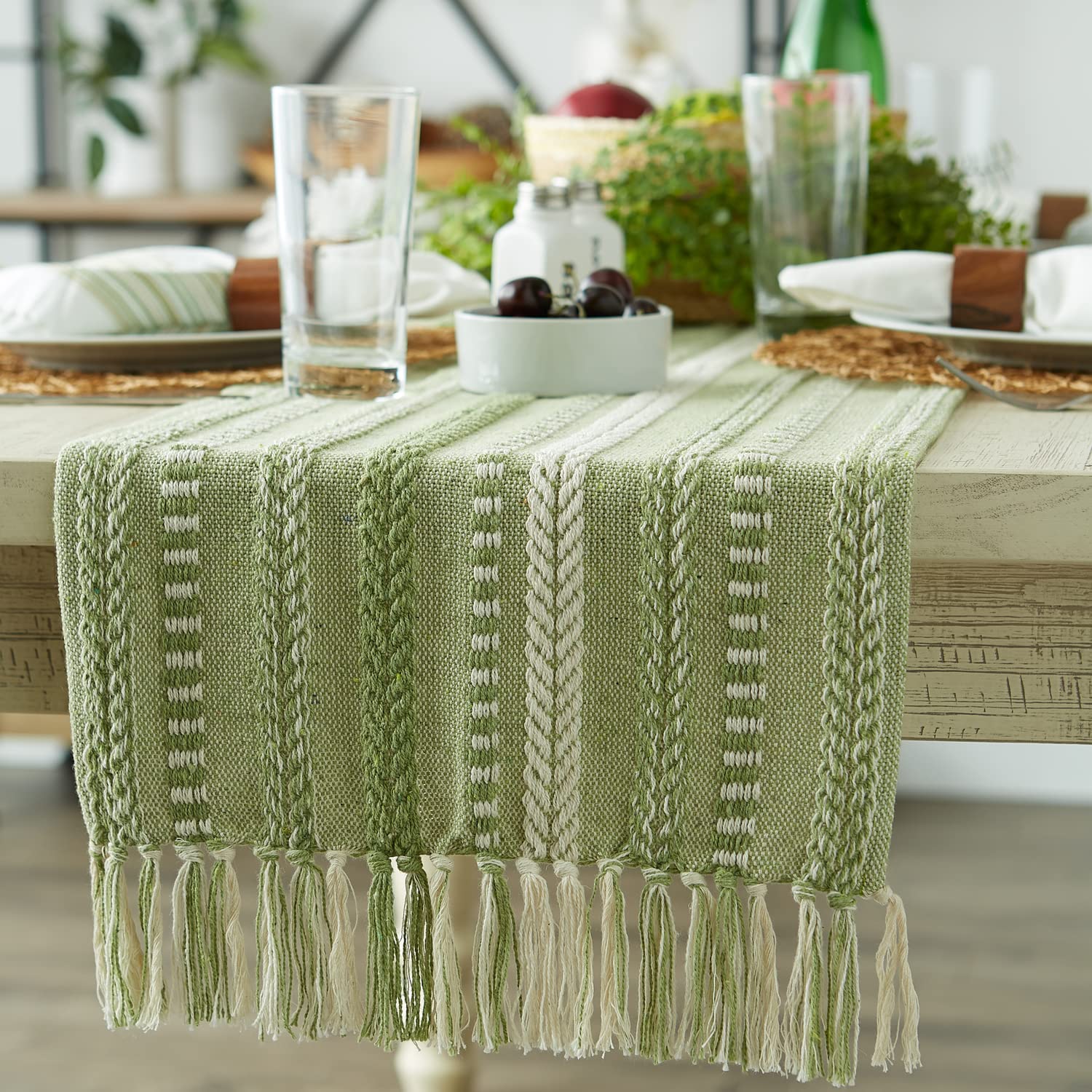 TIMELESS DESIGN: Like a favorite knit sweater, the runner has lots of texture and full of detail, fringed edges have a casual look that works with any style of dishware