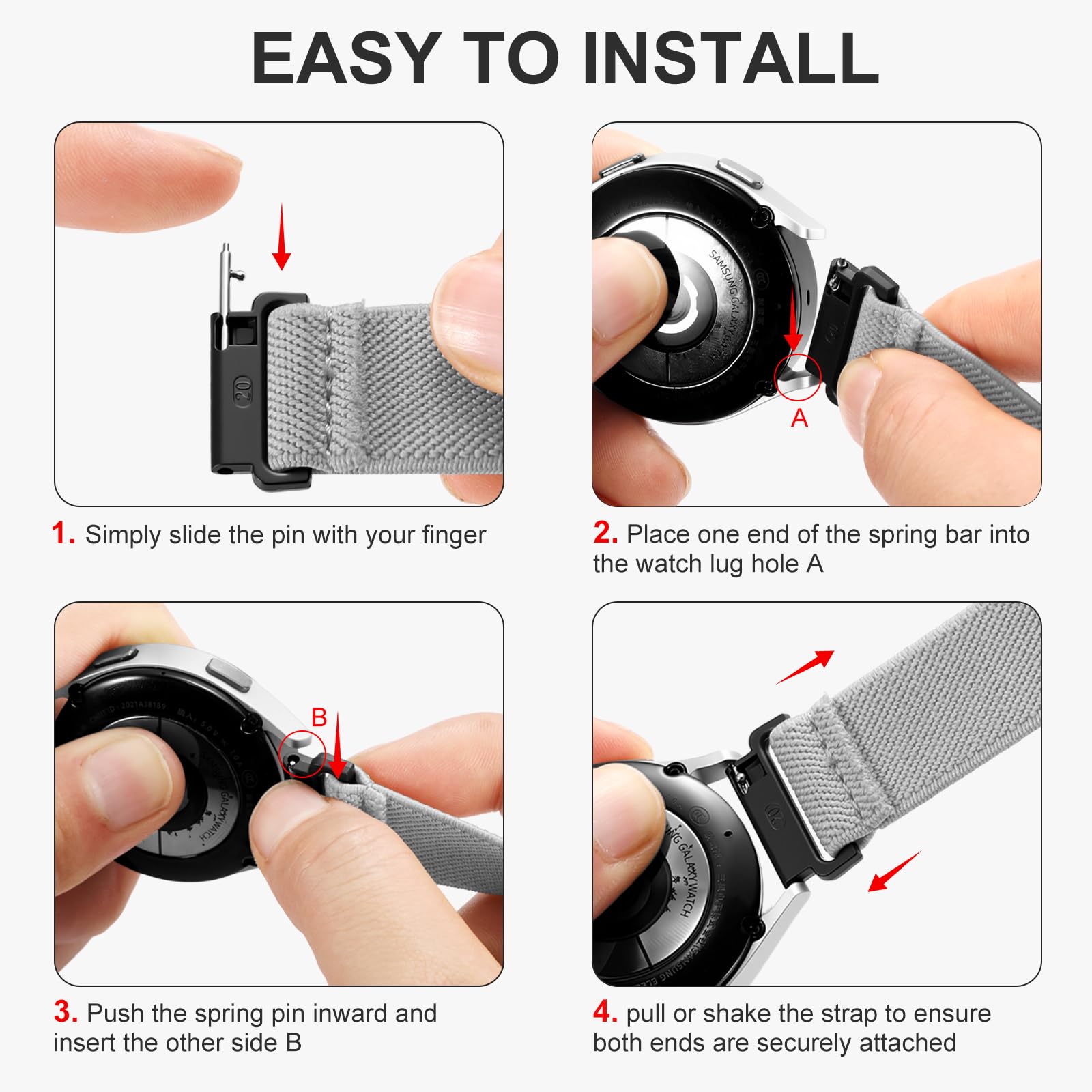 【Breathable & Stretchy Nylon Material】 Our bands compatible with Samsung Galaxy Watch 7 band made of super strong stretchable elastic braided nylon material, which makes the strap soft, lightweight, breathable & skin-friendly, preventing skin from irritation rash. Works for all day-workouts and daily life, bring you a new comfortable wearing experience.