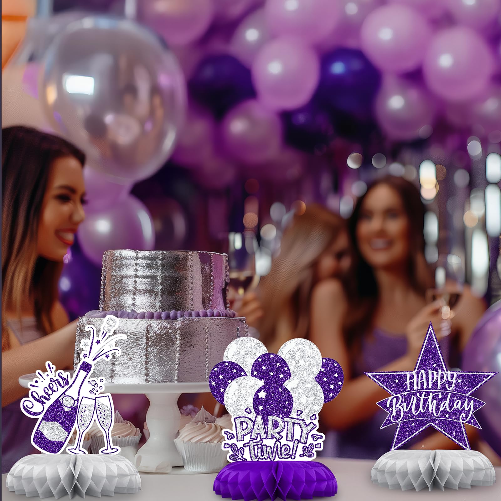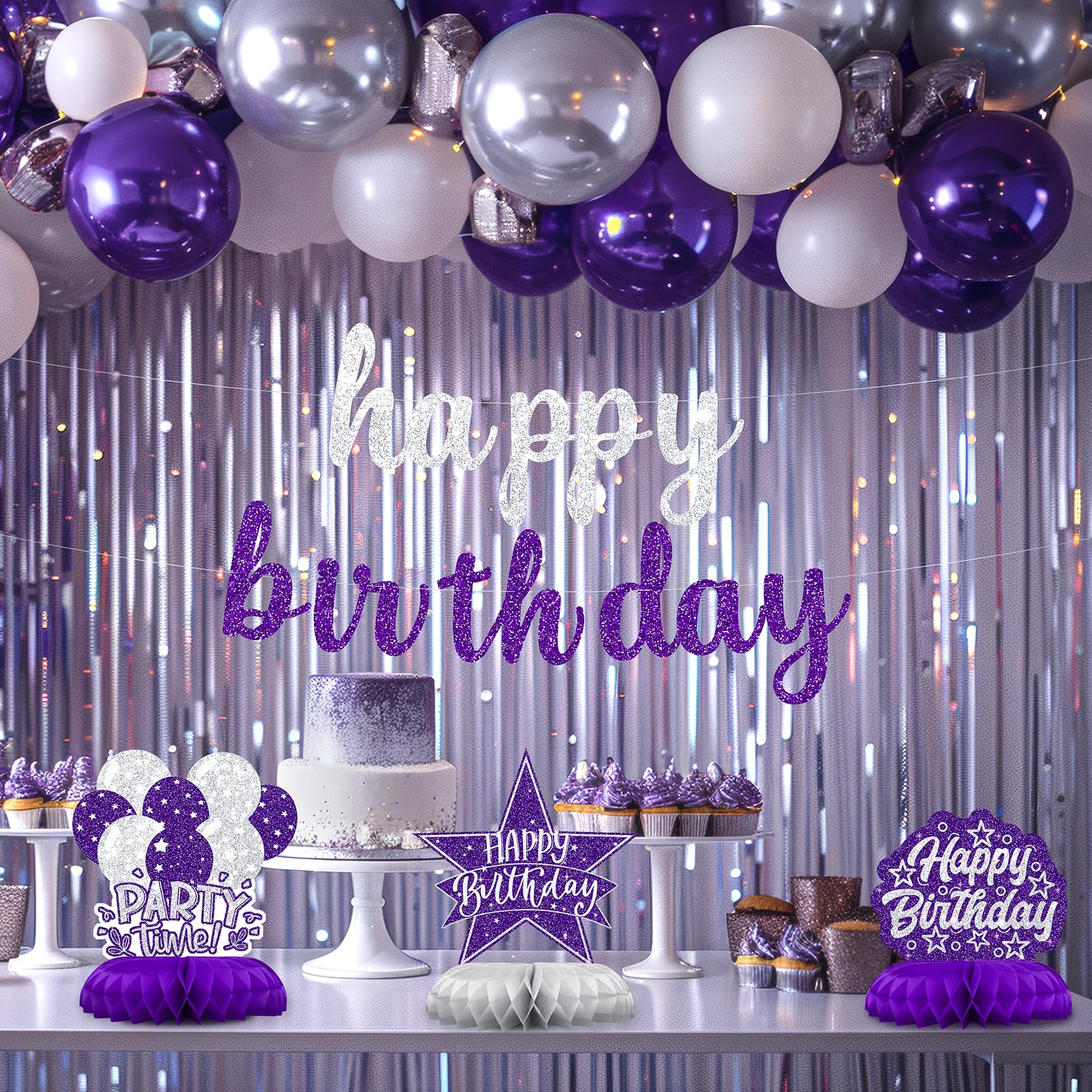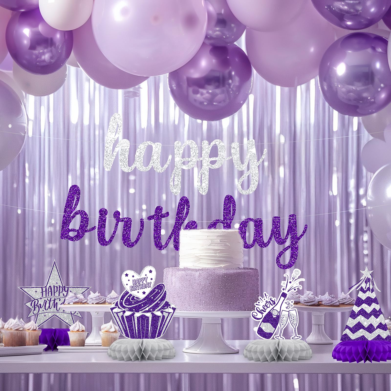 Perfect for Elegant Women’s Birthdays – Ideal for milestone birthdays, graduation dinners, or chic celebrations with a purple-silver theme. Great happy birthday table decorations for adults.
