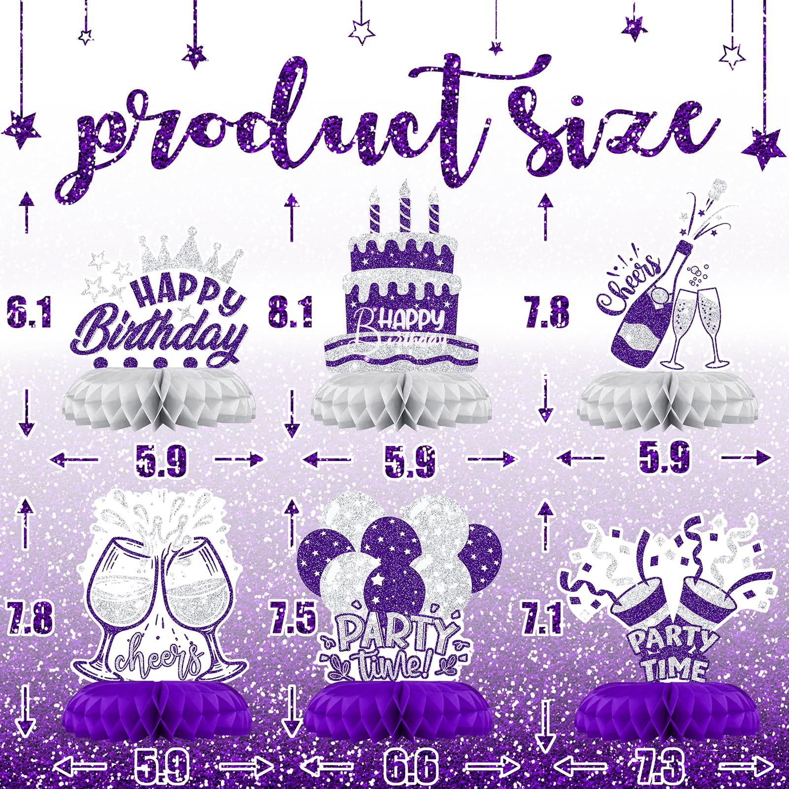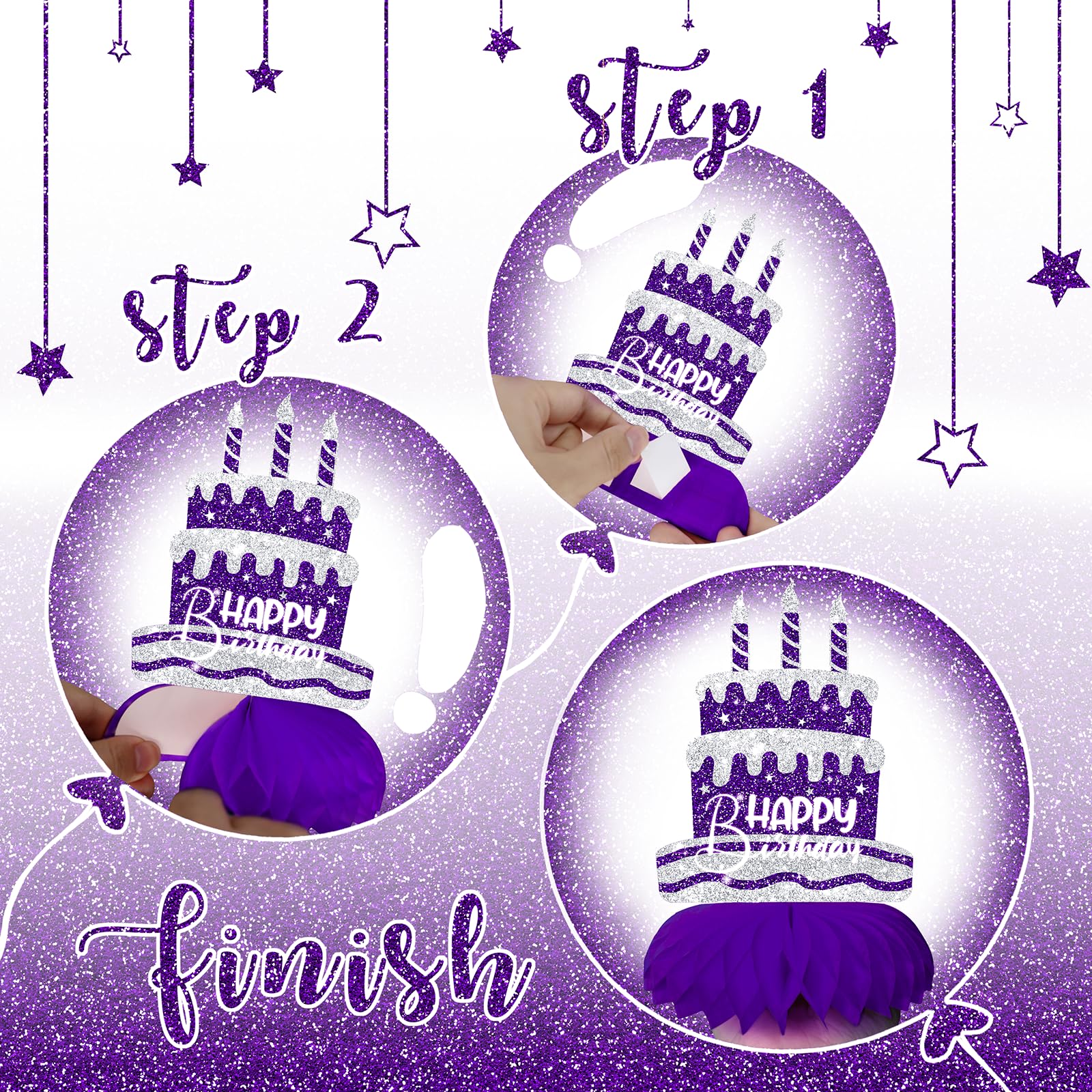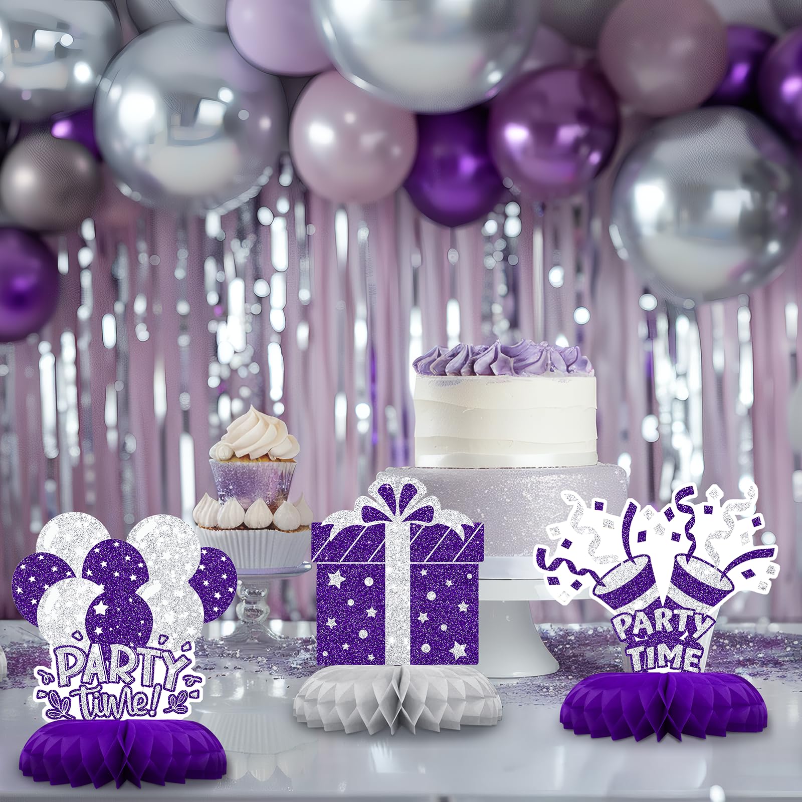 Quick Setup, No Hassle – Pre-folded and designed with peel-and-stick bases for simple assembly. Enjoy your purple and silver party decorations with no stress.