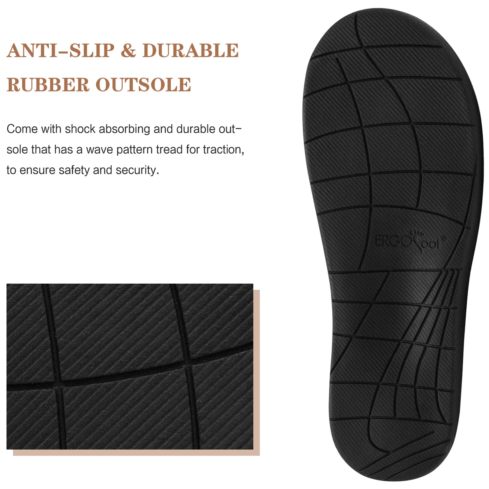 DURABLE AND ANTI-SKID - These comfortable orthopedic slippers come with rubber outsolethat enable you to step outside briefly, and the outsole has a wave pattern tread for traction, to ensure safety and security.