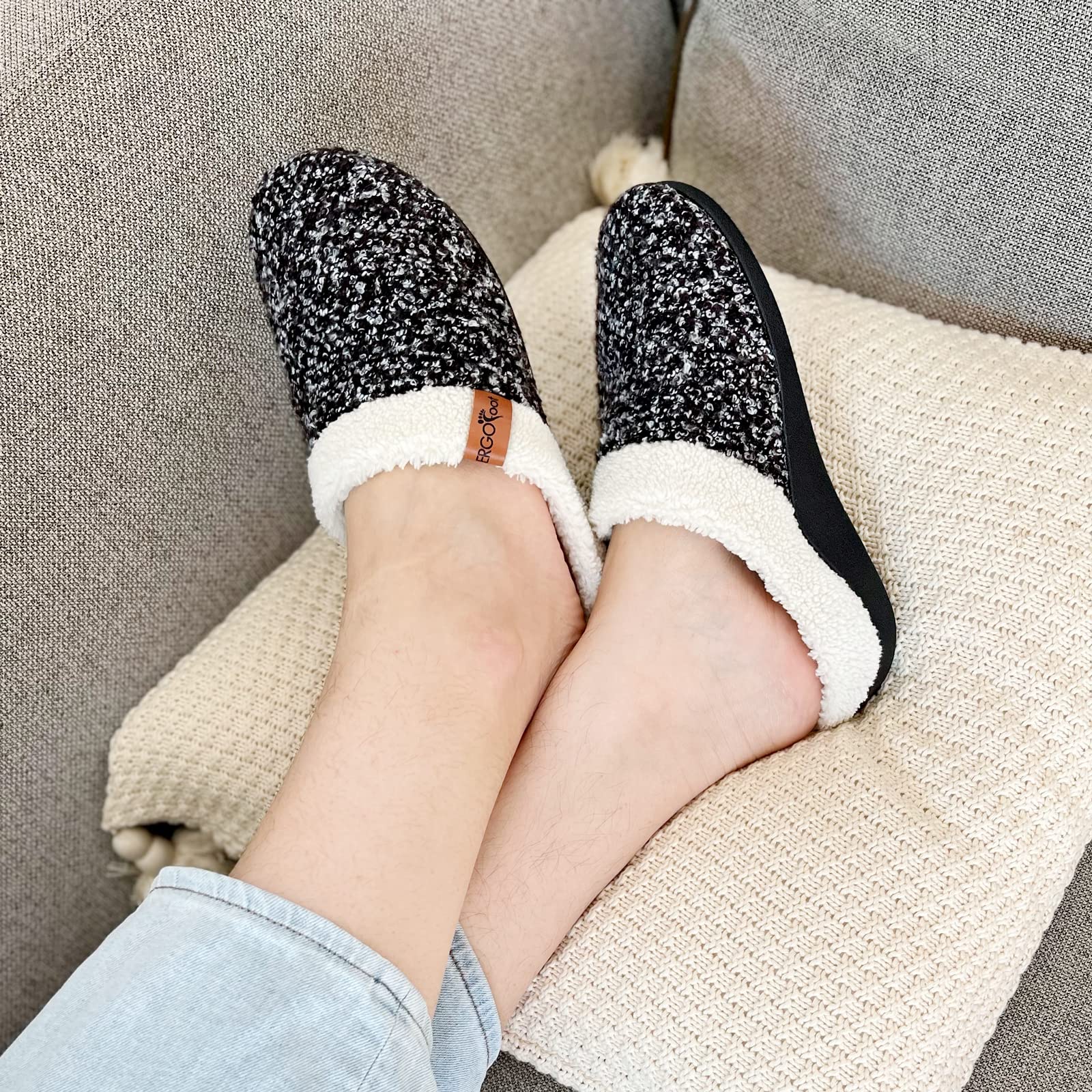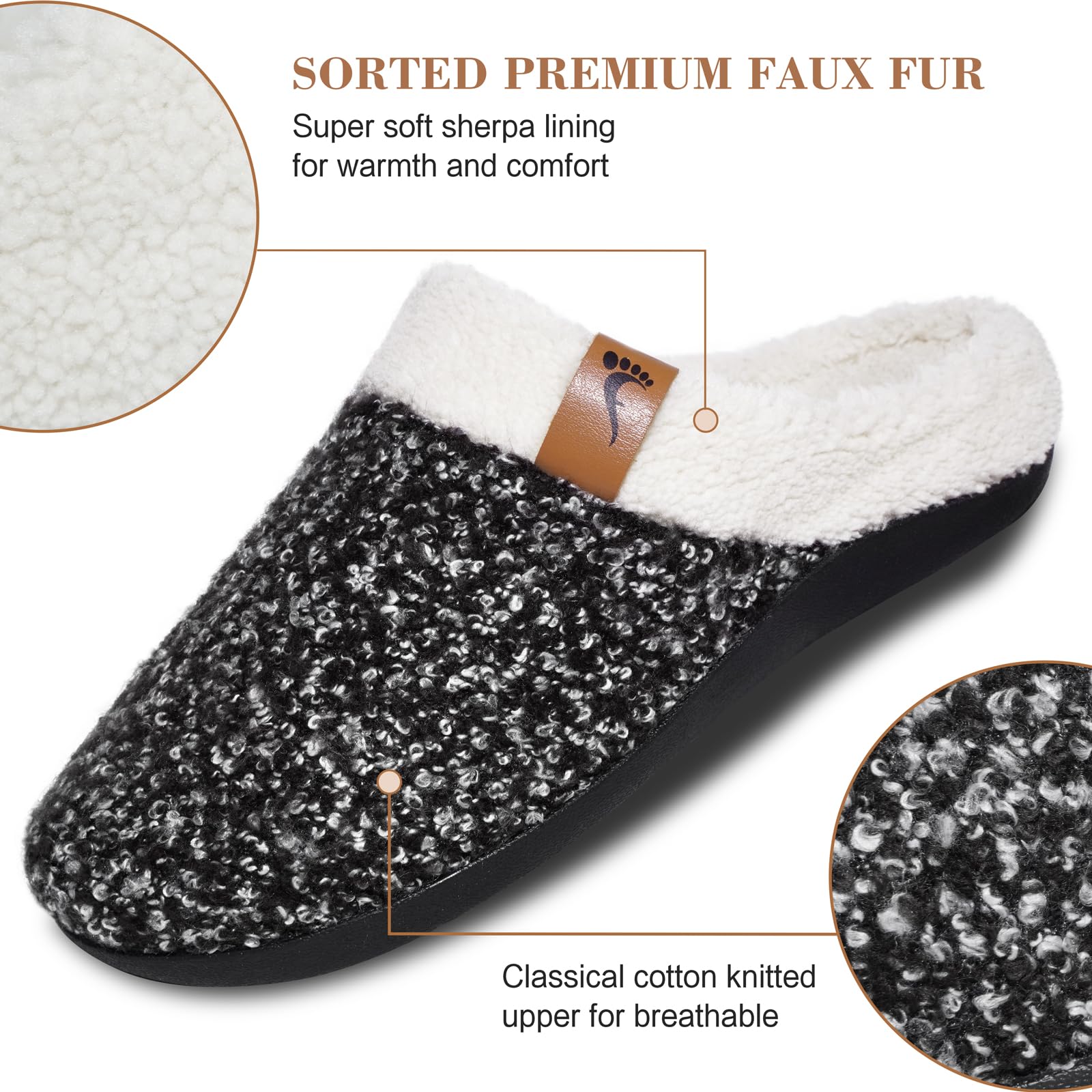 HIGH-QUALITY MATERIAL - Made of exquisite classical cotton knitted upper and ultra-soft sherpa lining. The flexible and lightweight EVA midsole absorbs shocks, diffuses underfoot pressure, and helps to plantar fasciitis relief.