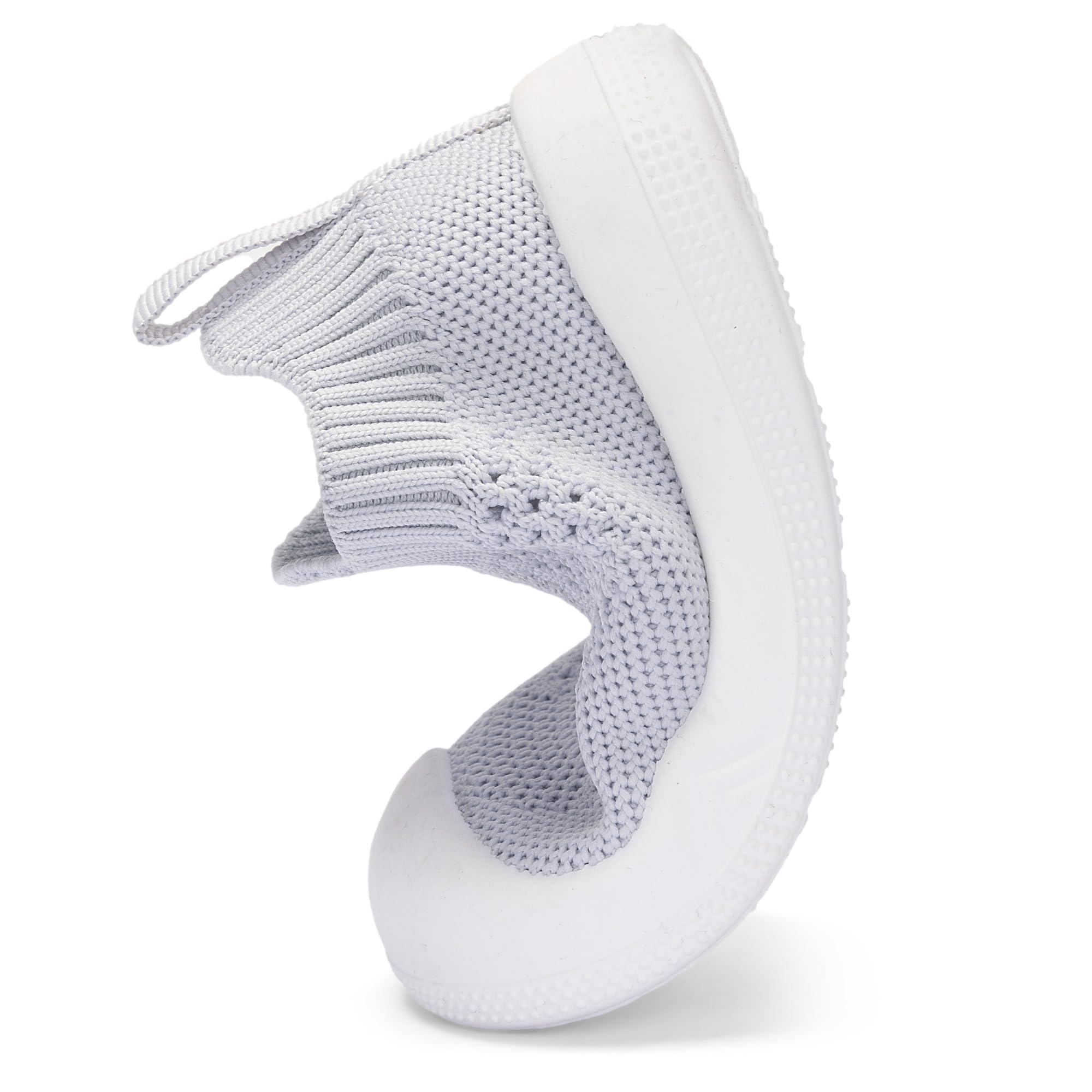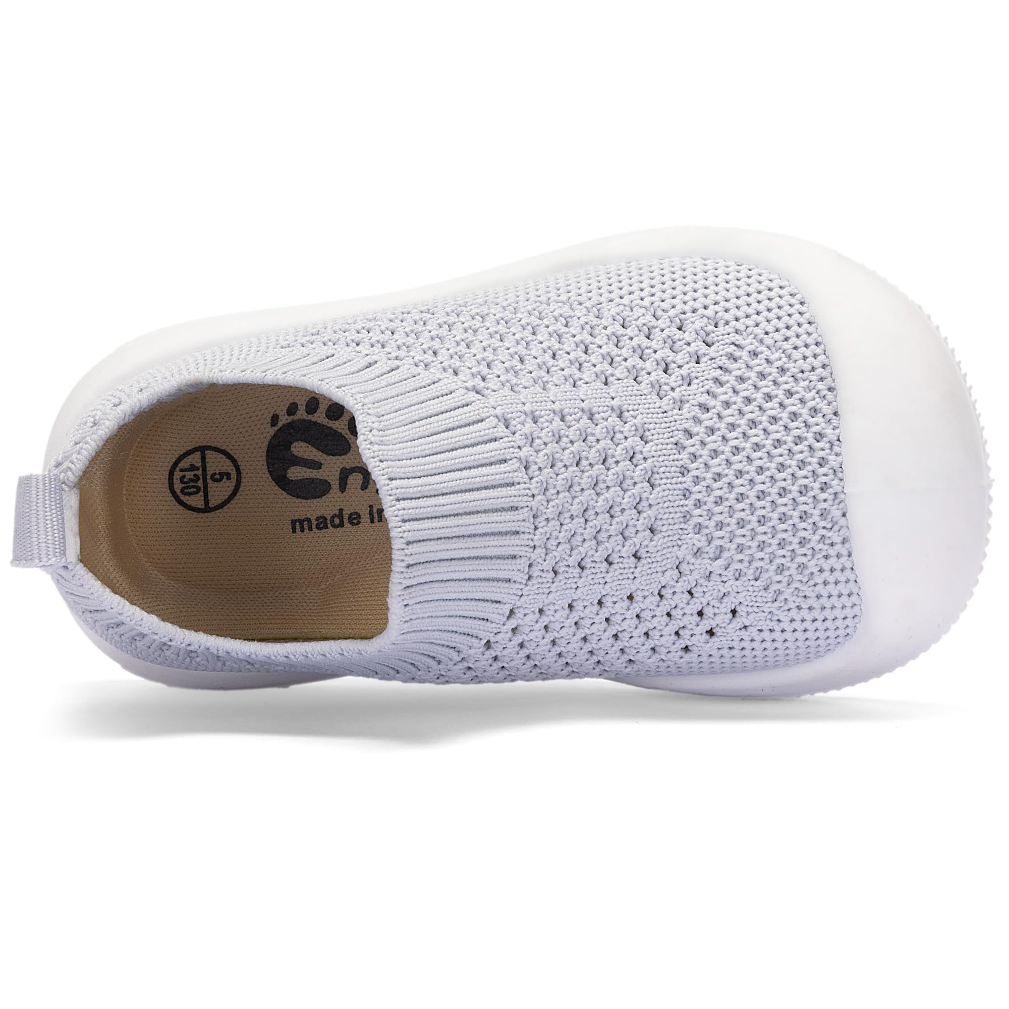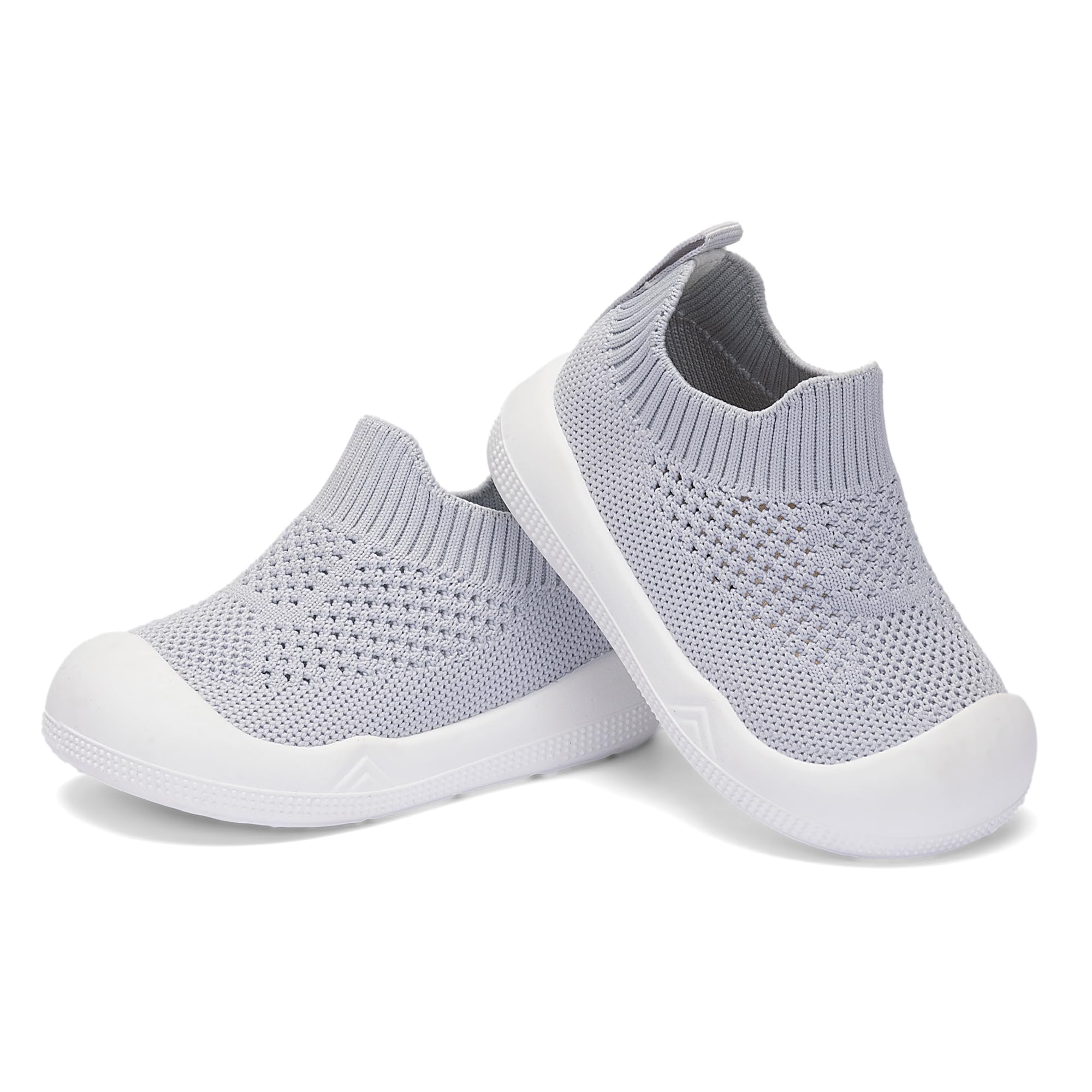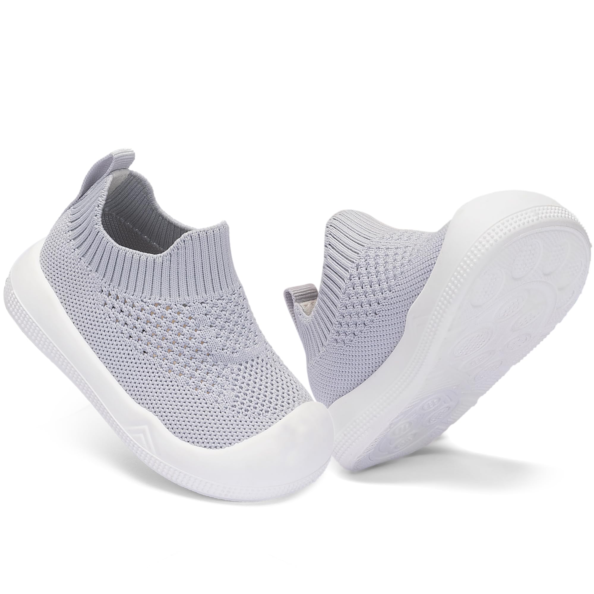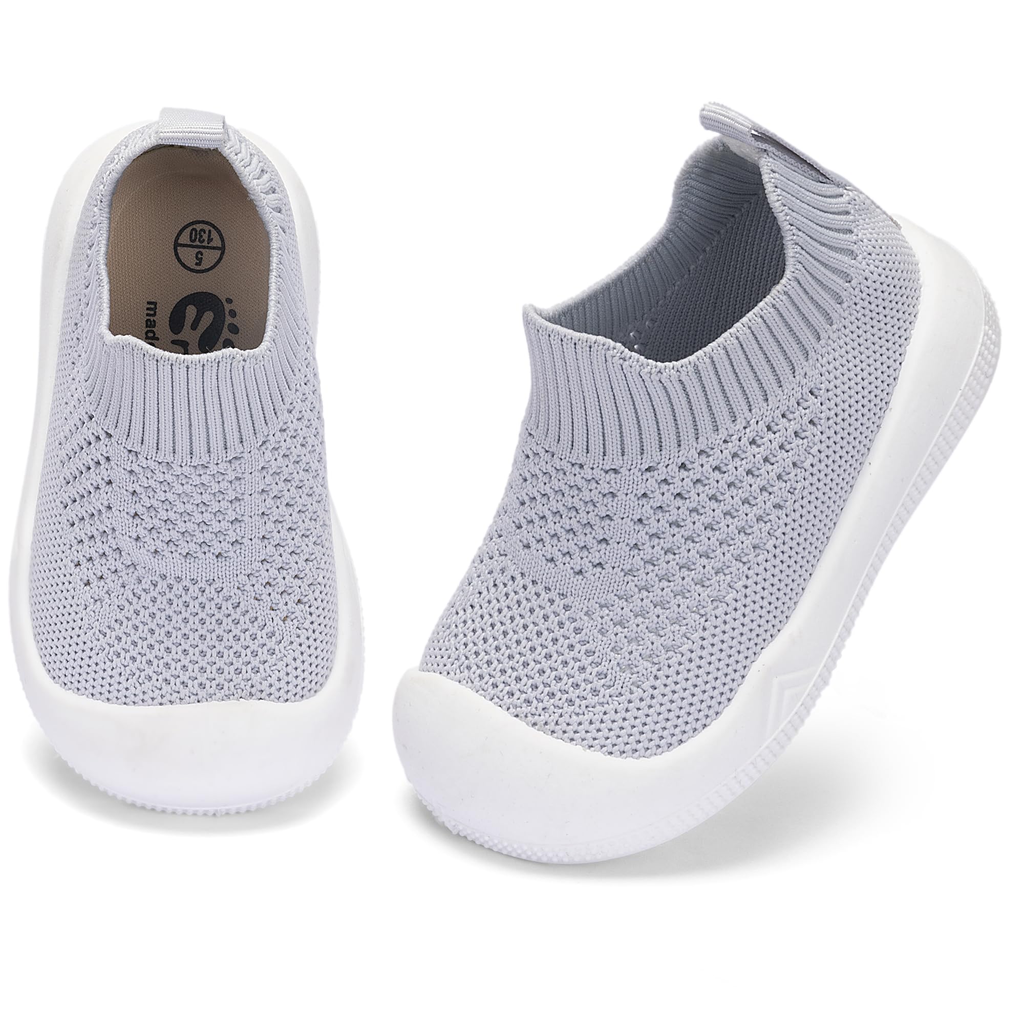 Easy Put On:Baby walking shoes The one-piece design with stretchy knit collar only takes seconds to for you to slip them on, so babies can jump right into playtime. Toddler slip on shoes let them play in comfort while enjoying their time.