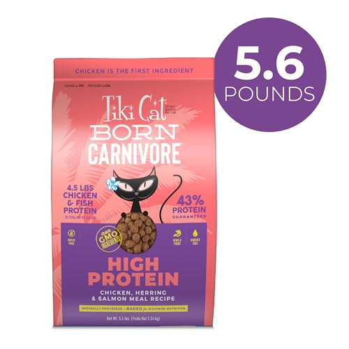NON-GMO INGREDIENTS - Your feline friend will thrive with the high-protein, high-fat and meat-based ingredients in Tiki Cat Born Carnivore