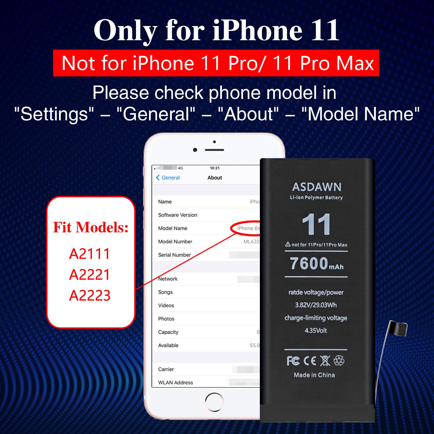 [PLS CONFIRM DEVICE MODEL] --- The battery repair kit contains the instruction to guide you step by step installation, and we have professional engineers to answer all your questions about the repair process. Please verify your old battery part number and phone model before purchasing this replacement battery. Compatible with iPhone 11 6.1-inches (A2221 A2111 A2223). ★NOT FOR iPhone 11 Pro/ 11 Pro Max★