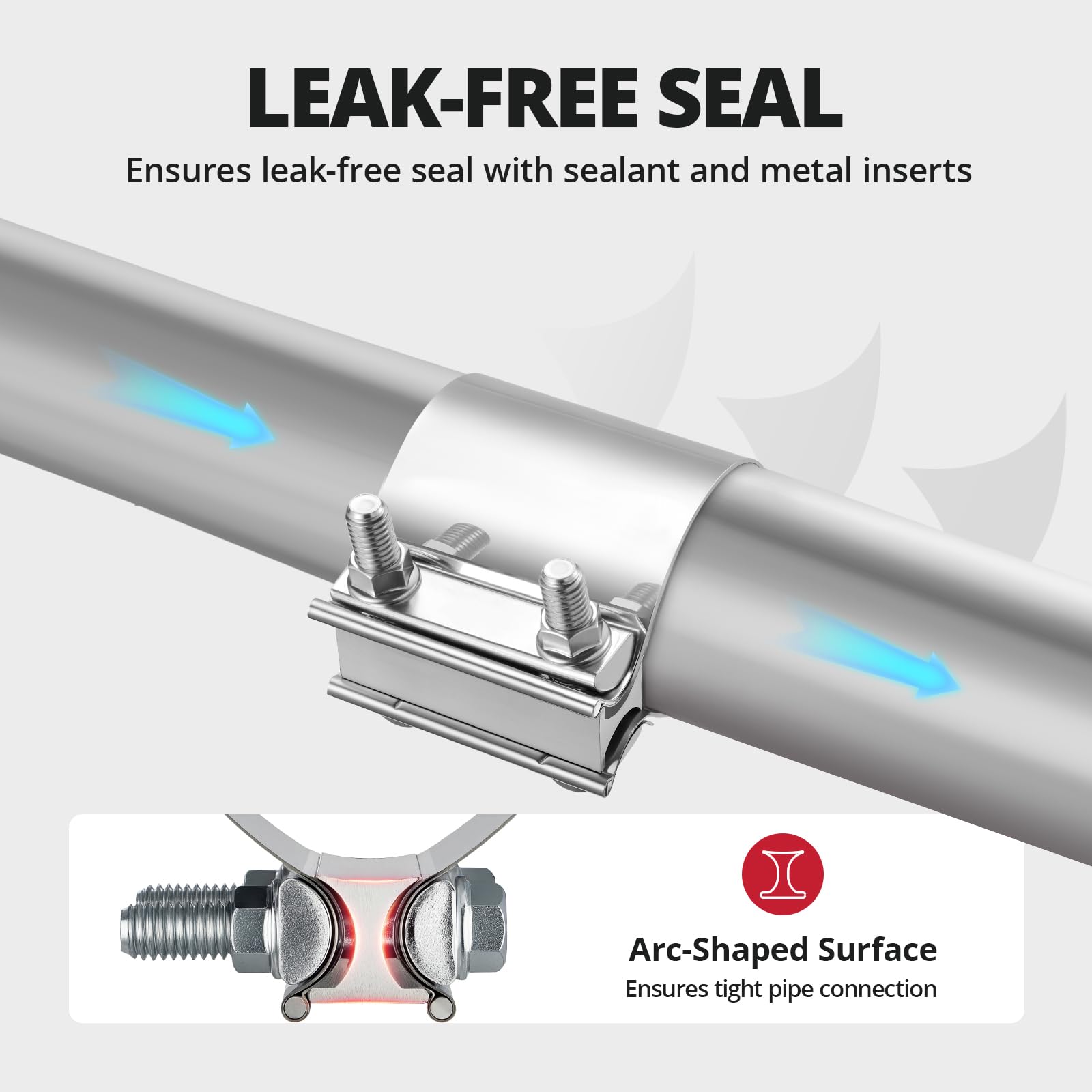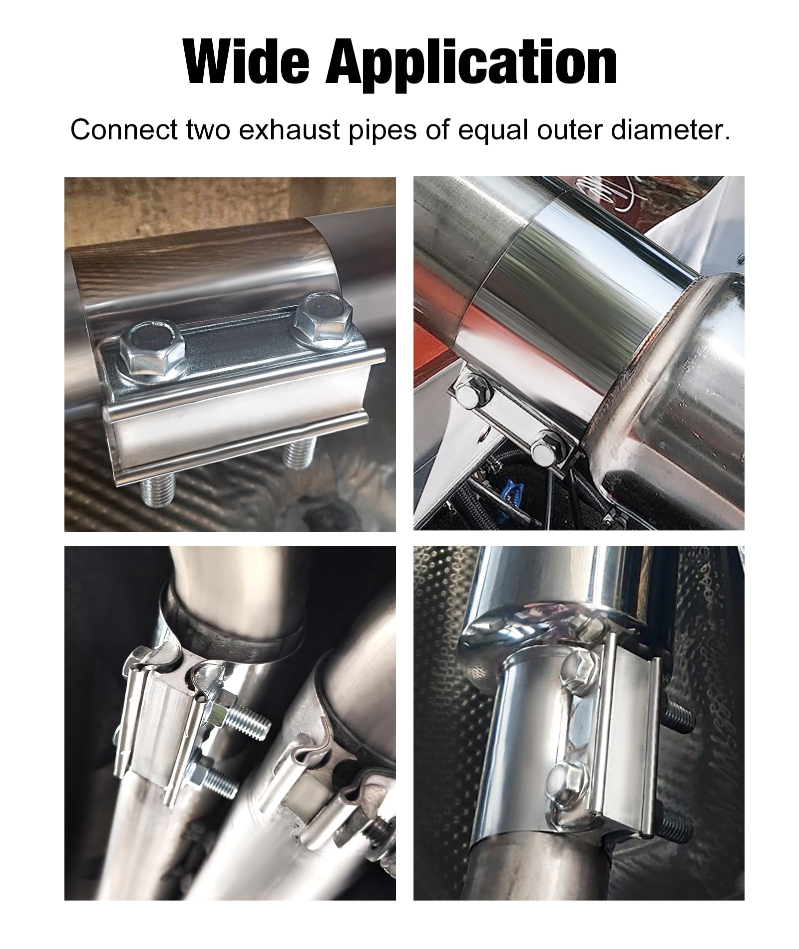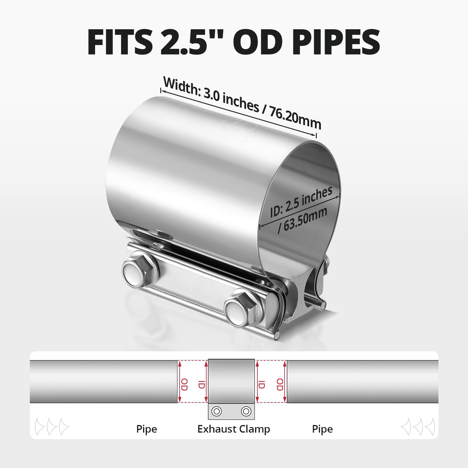Fit for 2.5" Exhaust Pipe: This clamp is designed to connect 2.5" OD (outside diameter) exhaust pipes seamlessly. It ensures a tight, vibration-resistant seal for exhaust pipes, mufflers, and catalytic converters.