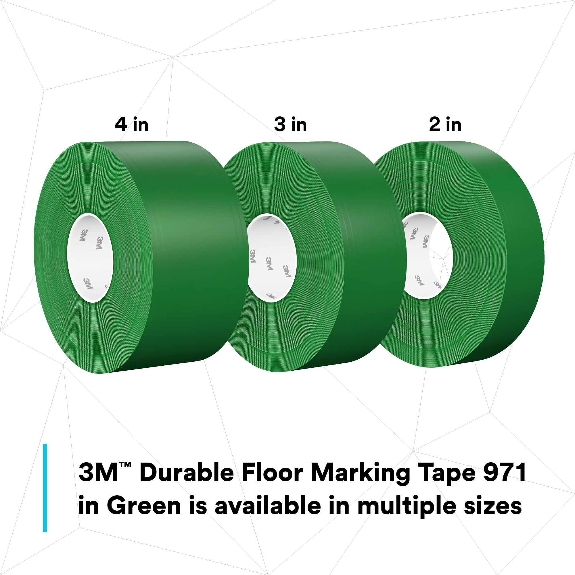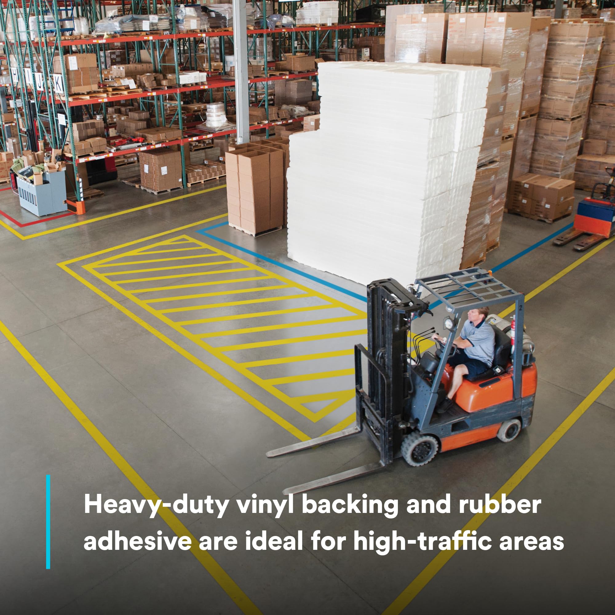 A Heavy-Duty Tape for Heavy Traffic 3M™ Durable Floor Marking Tape 971 is specially designed to withstand heavy traffic areas, with colors that remain vivid even when exposed to heavy abrasion such as scuffing from pallets and heavy equipment. The tough backing has a low profile and resists curling which can cause edge lift and reduce the life of a floor marking tape. The rubber adhesive provides a strong bond to floors but also promotes one-piece clean removal, even after extended use. This tape has no liner and can easily be applied using 3M™ Lane Marking Applicator M-1 or by hand. This floor marking tape is ideal for 5S lean manufacturing initiatives and comes in a variety of colors and widths up to 24 inches (61 cm). Recommended Applications Floor marking in factory or warehouse high traffic areas, including areas with pallets and heavy equipment Bringing Better Ideas to the Surface Through Science and Innovation In our 3M Industrial Adhesives and Tapes Division, we apply the science of adhesion to deliver innovative solutions that improve the design and manufacturing processes of companies around the world. In the end, our technologies help customers like you deliver competitive products to the market faster and more efficiently.