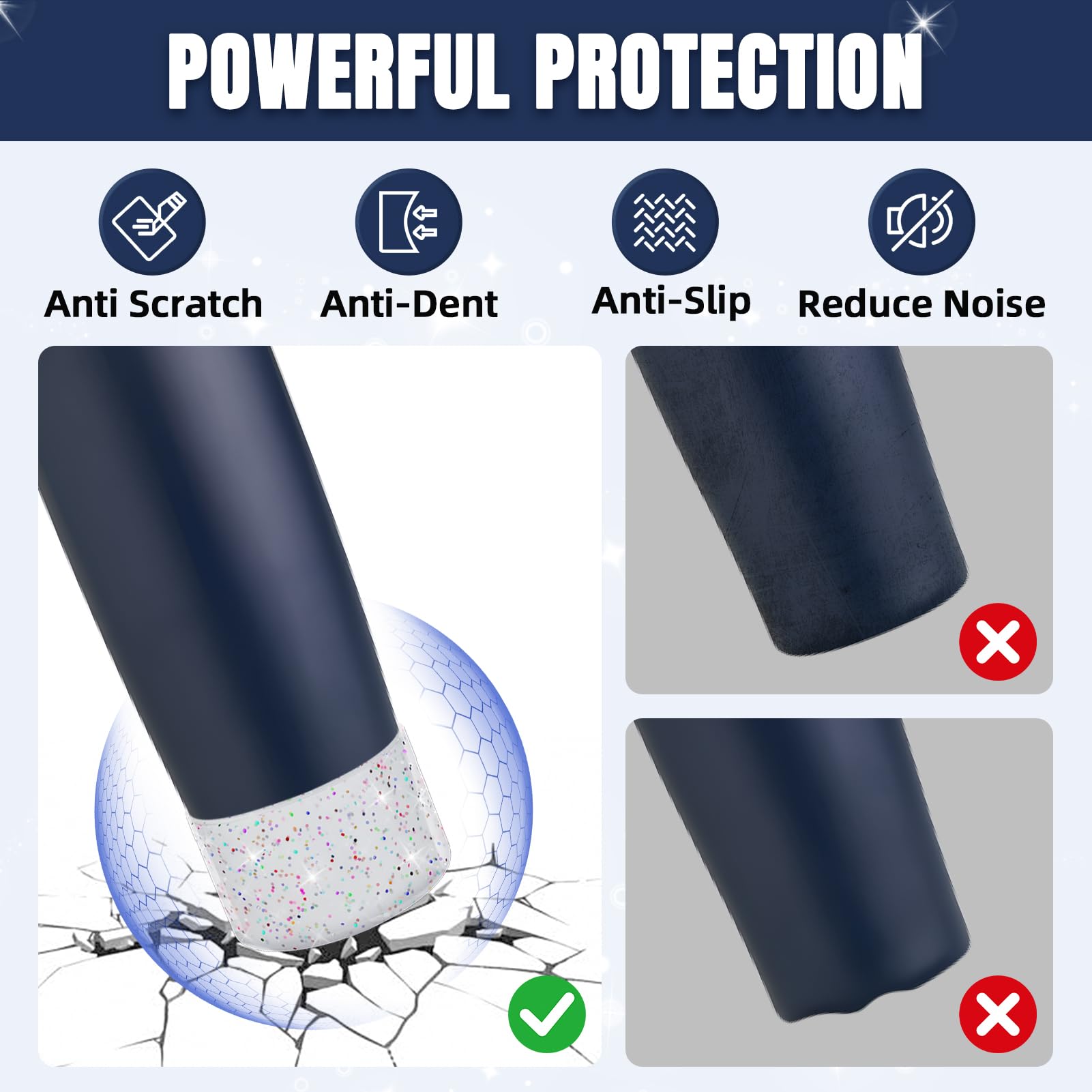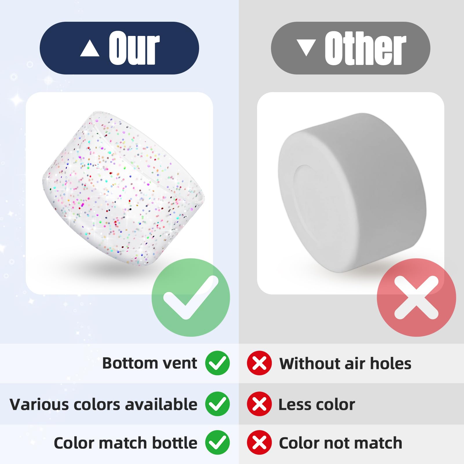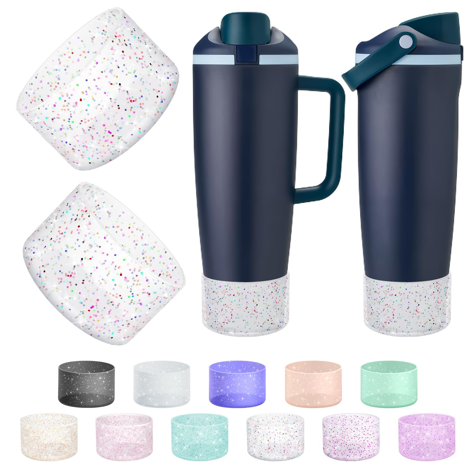 Longevity Enhancer: The silicone sleeve can wrap the bottom of the water bottle in all directions, eliminate the harsh noise when the water bottle contacts the contact surface, effectively resist scraping and collision, and prolong the service life of the water bottle