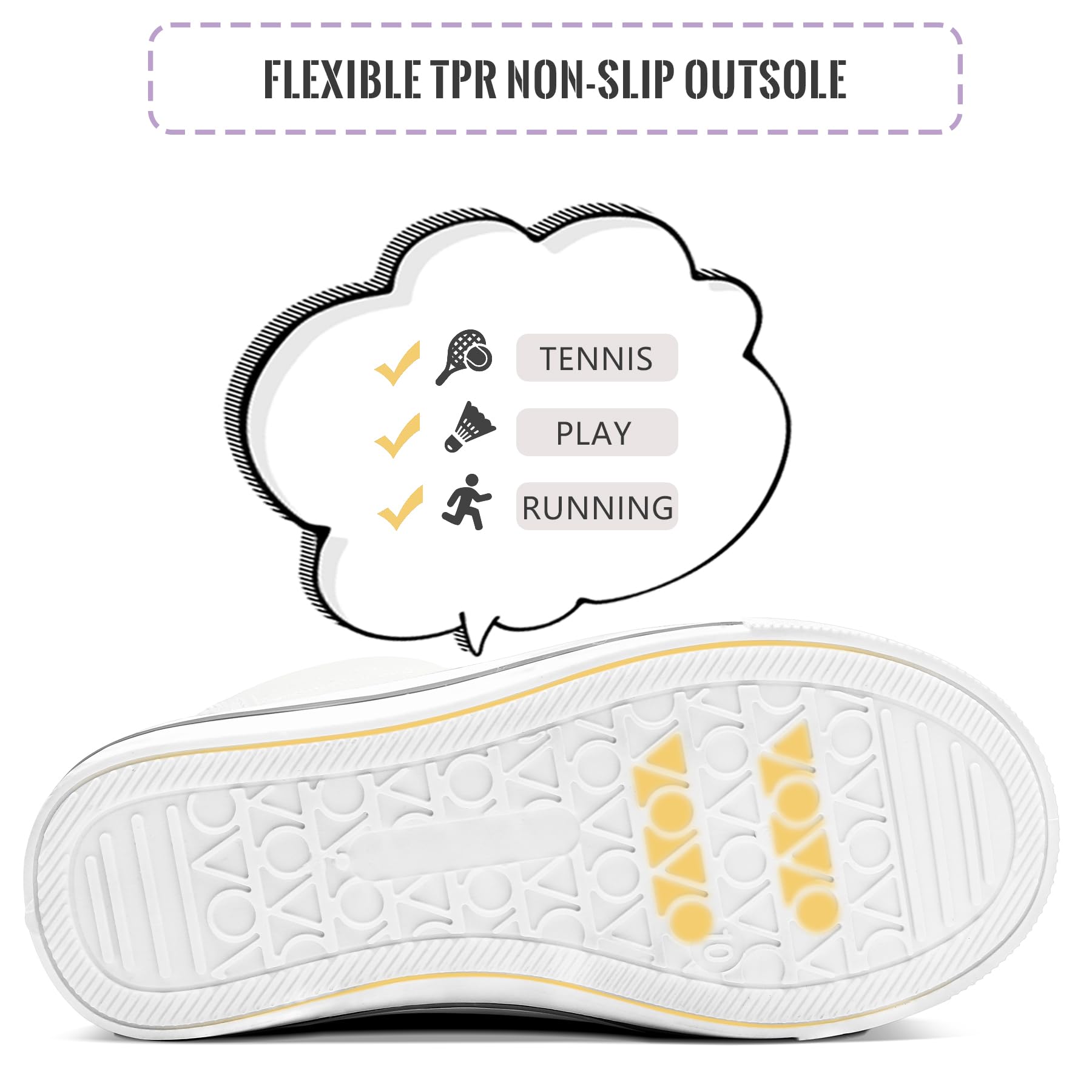 Sturdy & Non-slip Outsole:On the the wear-resistant sole, we add various pattern to increase the grip which will prevent kids from slipping while playing, so they can run more safely.