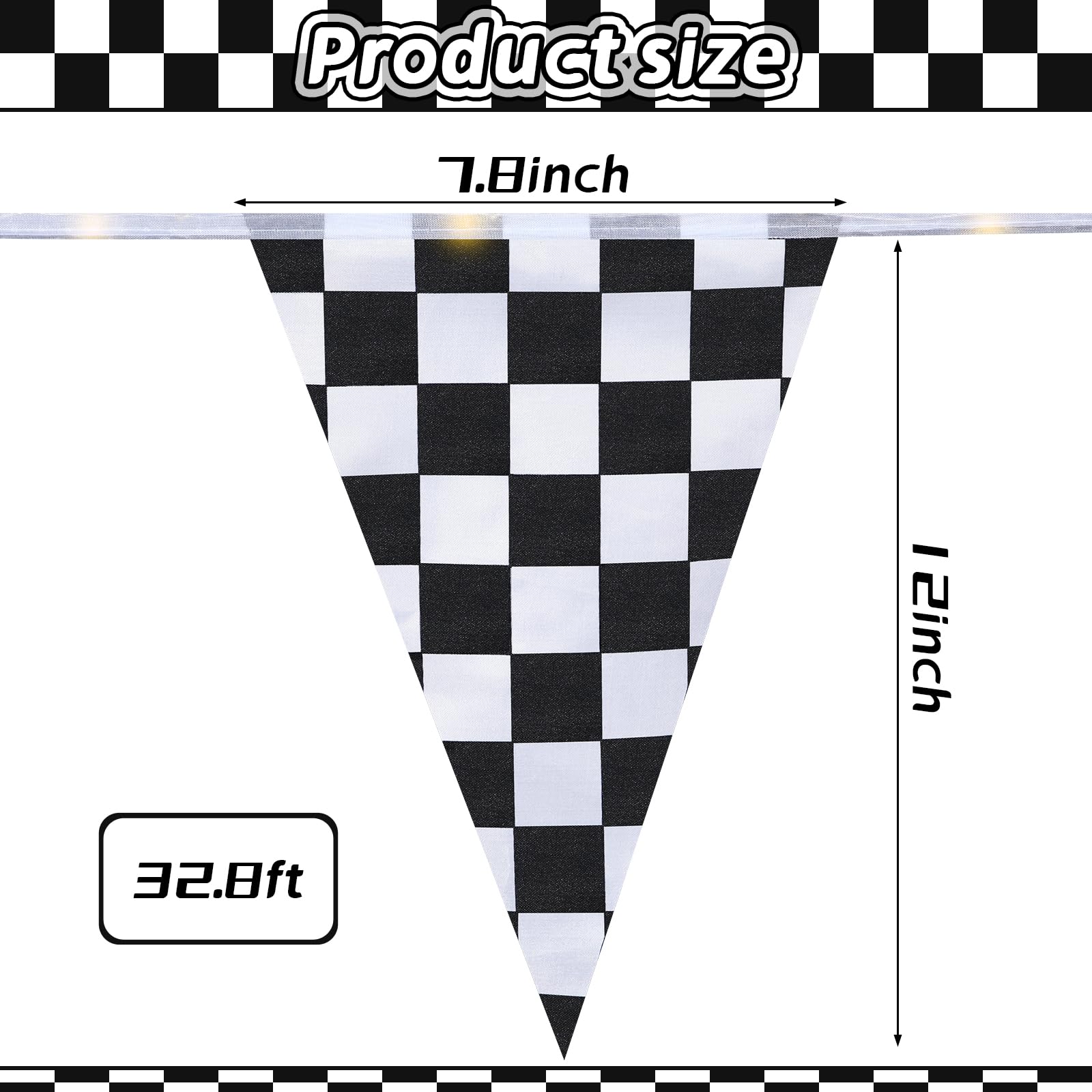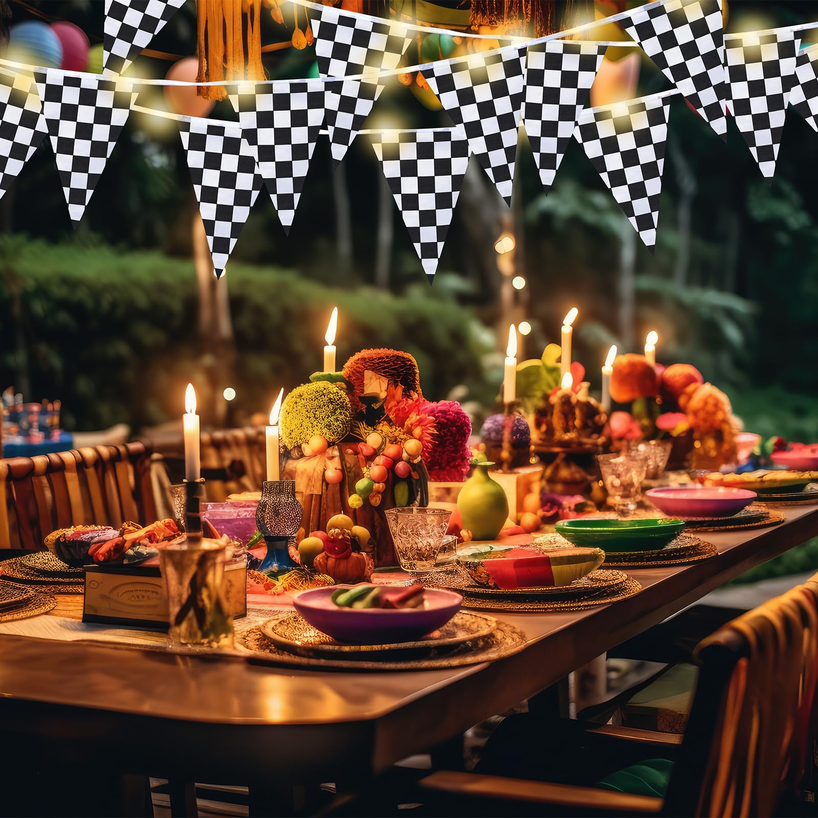 Long Enough for Easy Installation: the checkered flags banner comes pre assembled, ready to be applied right out of the package; Measuring about 32.8 ft/ 10 m long, it offers an ample length for versatile usage, be it for living room decorations, birthday parties, or outdoor events; And it can be cut to fit specific party area requirements