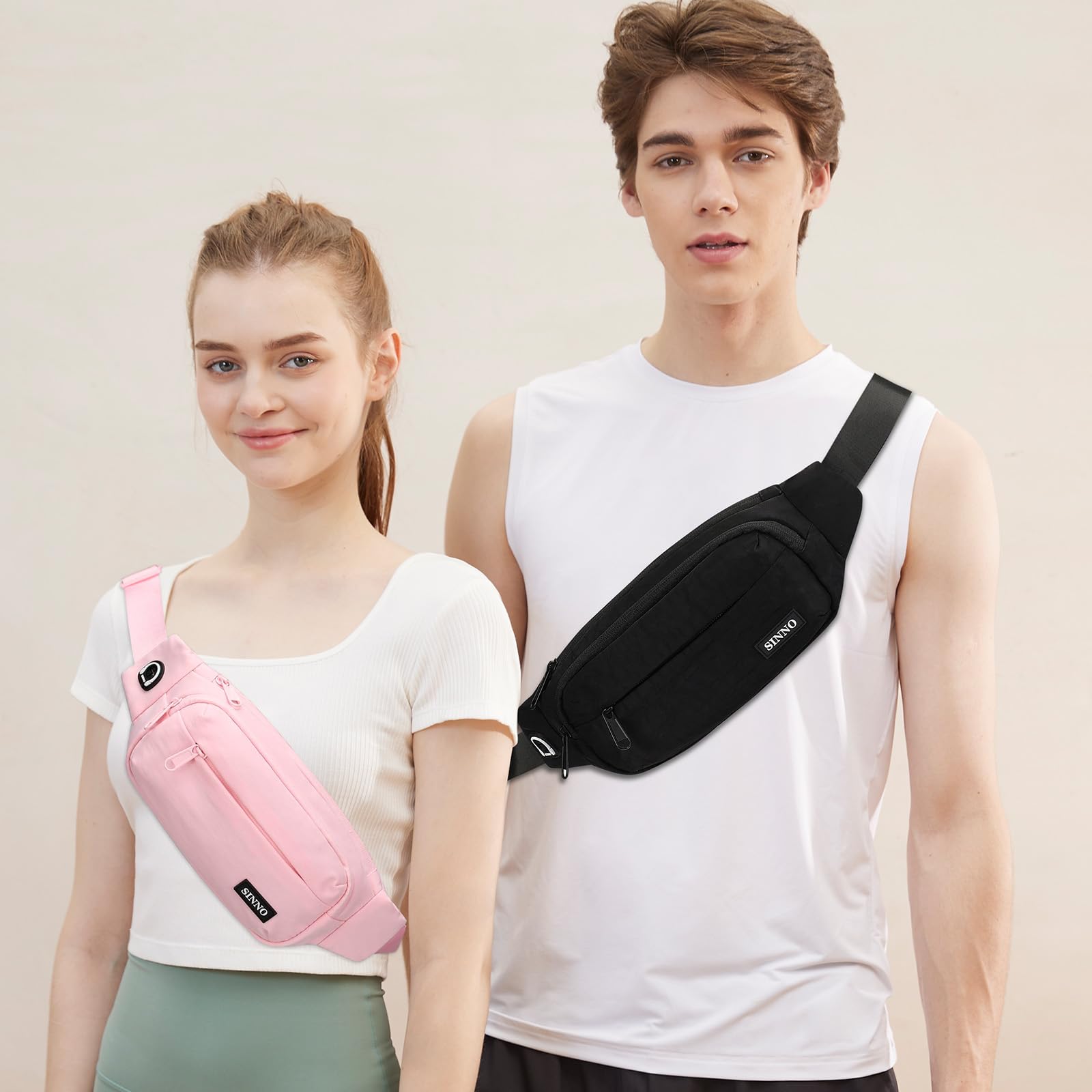 【Best Gifts for Women Men】Our fanny pack size is about 13.5"x 5"x 1.5" with 4(Four) zippered pockets perfect for most people who want to be hands free to carry the most needed items,include all size of phone(iphone 13 14 pro max...),keys,small wallet,money,cards,passport, glasses,ID,chapstick,charger and other travel essentials. Perfect for various outdoor activities such as Travel,Running,Shopping,Themepark Day Trips,Hiking,vacation,daily use,etc.A great Gift for Women Men and Family.