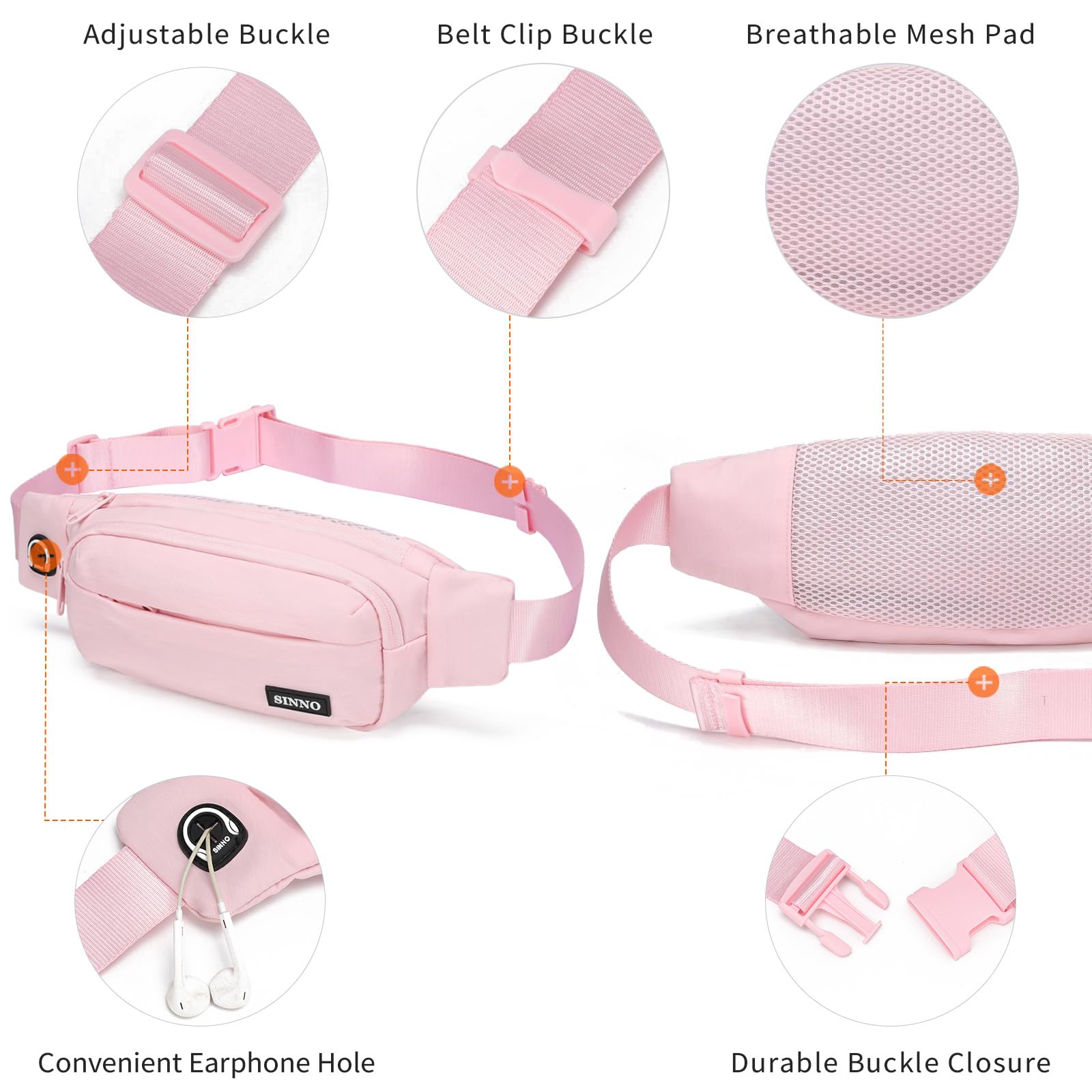【Have More Safety and Fun】With our creative design fanny packs for women,a small hidden zipper compartment inside the main pocket perfect for your valuables for extra security.The headphone hole allows you to listen to music or the function of call during fitness and walking so that you can free your hands to enjoy your personal time.
