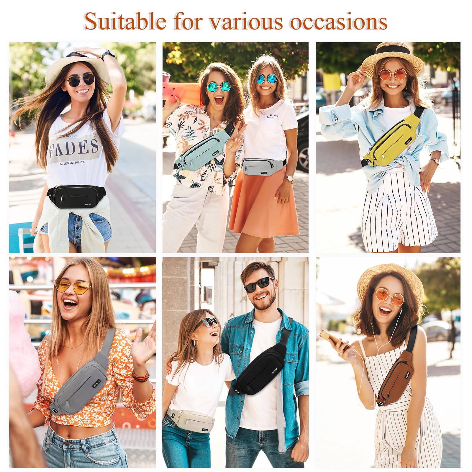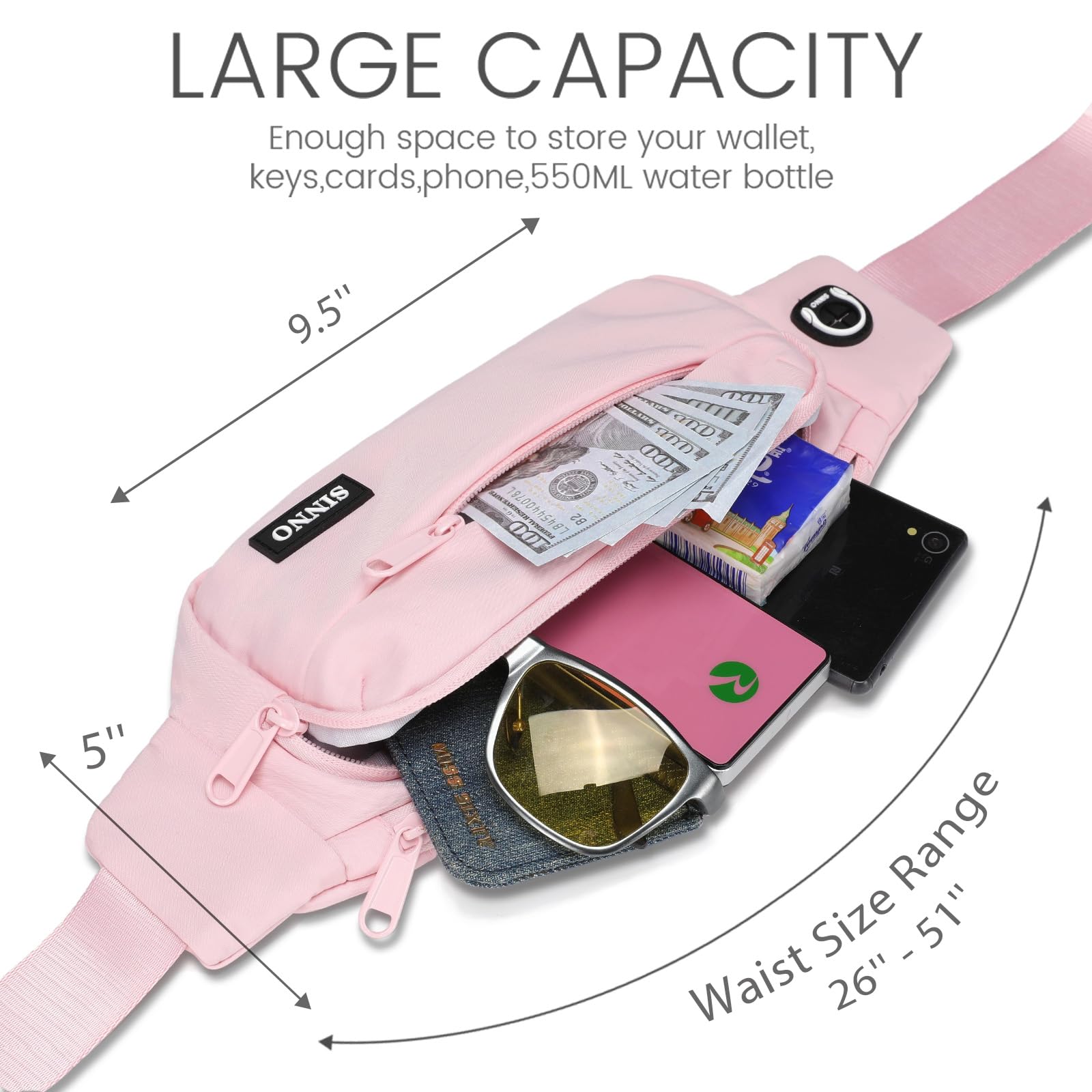 【Changeable Style Fanny Pack,Many Ways to Wear】Since the comfortable long strap is widely adjustable for most waist size(26” - 51”).There are many ways to wear this fanny pack - You can wear it in front of your waist, back on your hip, slant across your chest or over your shoulder.Perfect for various occasions.