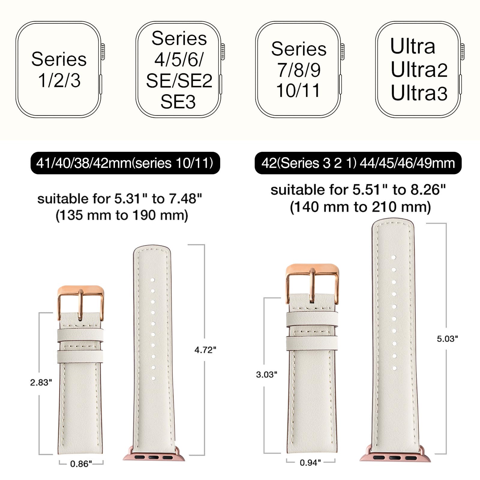 Perfect Compatibility: Our band is designed to fit Apple Watch models 42mm(Series 3 2 1) 44mm 45mm 46mm 49mm and is compatible with Ultra 3, Ultra 2, Ultra, SE3,SE2, SE, Series 11 10 9 8 7 6 5 4 3 2 1. The wrist strap is suitable for wrists from 5.51" to 8.26" (140 mm to 210 mm), ensuring a perfect fit for both small and large wrists