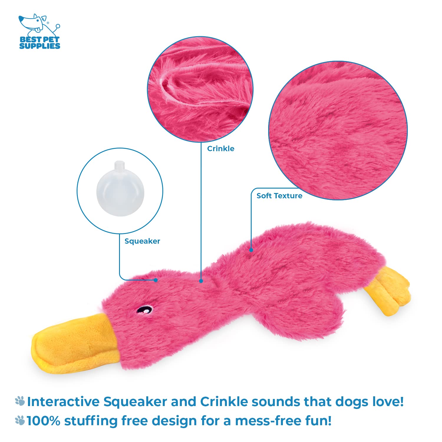 Interactive Squeaker and Crinkle Sounds – [Brand] dog crinkle toys no stuffing designs boast an audible squeaker inside the duck’s head and crinkle paper running through the body to give your pup multiple ways to have fun playing.