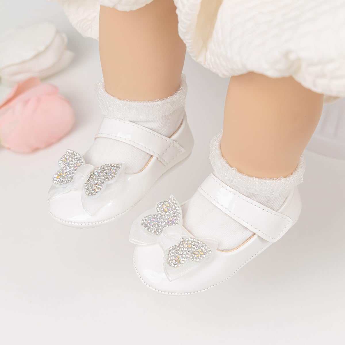 Rubber Sole: The soles of baby Mary Jane shoes have lovely bows and raised patterns of love, which play an anti-skid sole and can protect the baby from falling during daily activities. The rubber sole is conducive to the baby's feet touching the ground naturally, and is conducive to safe growth and walking