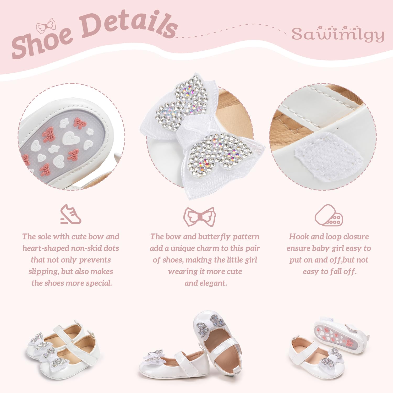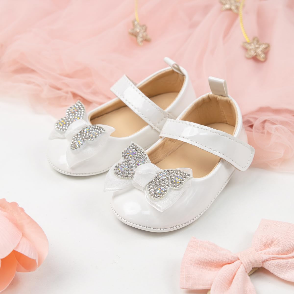 Glitter Design: The cute butterfly design make your little kid shine in the crowd. It would draw much attention and compliment. These first walkers shoes suit for any occasions like crawling, walking and playing or photography