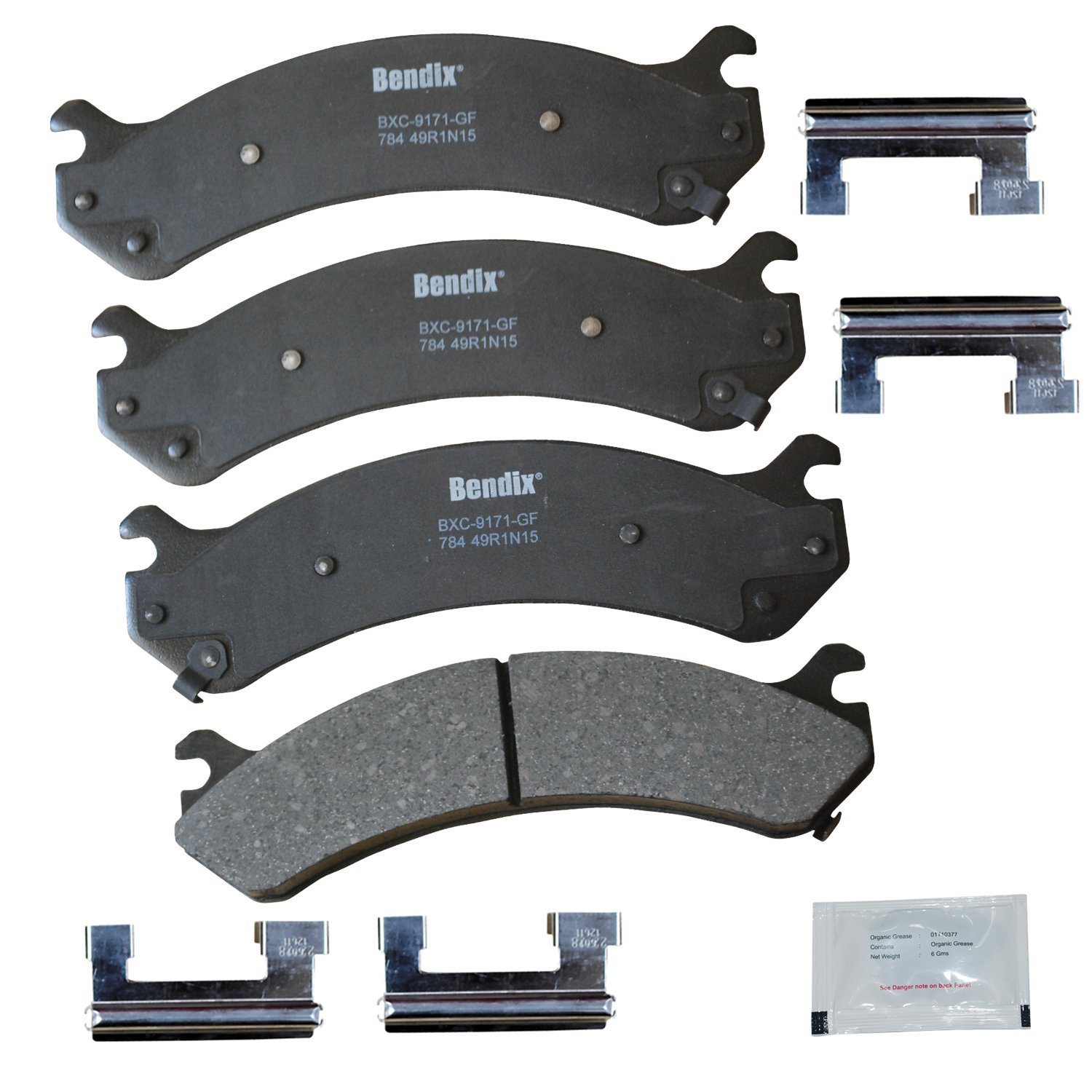 Bendix Priority 1 Ceramic Brake Pads Set with Installation Hardware. These brake pads are engineered and designed to meet all OE specifications for fit, form, and function while providing safe, consistent, and reliable stopping performance. With specific shims, slots, and chamfers, the pads provide not only a precise fit but also an ultra-quiet braking experience.