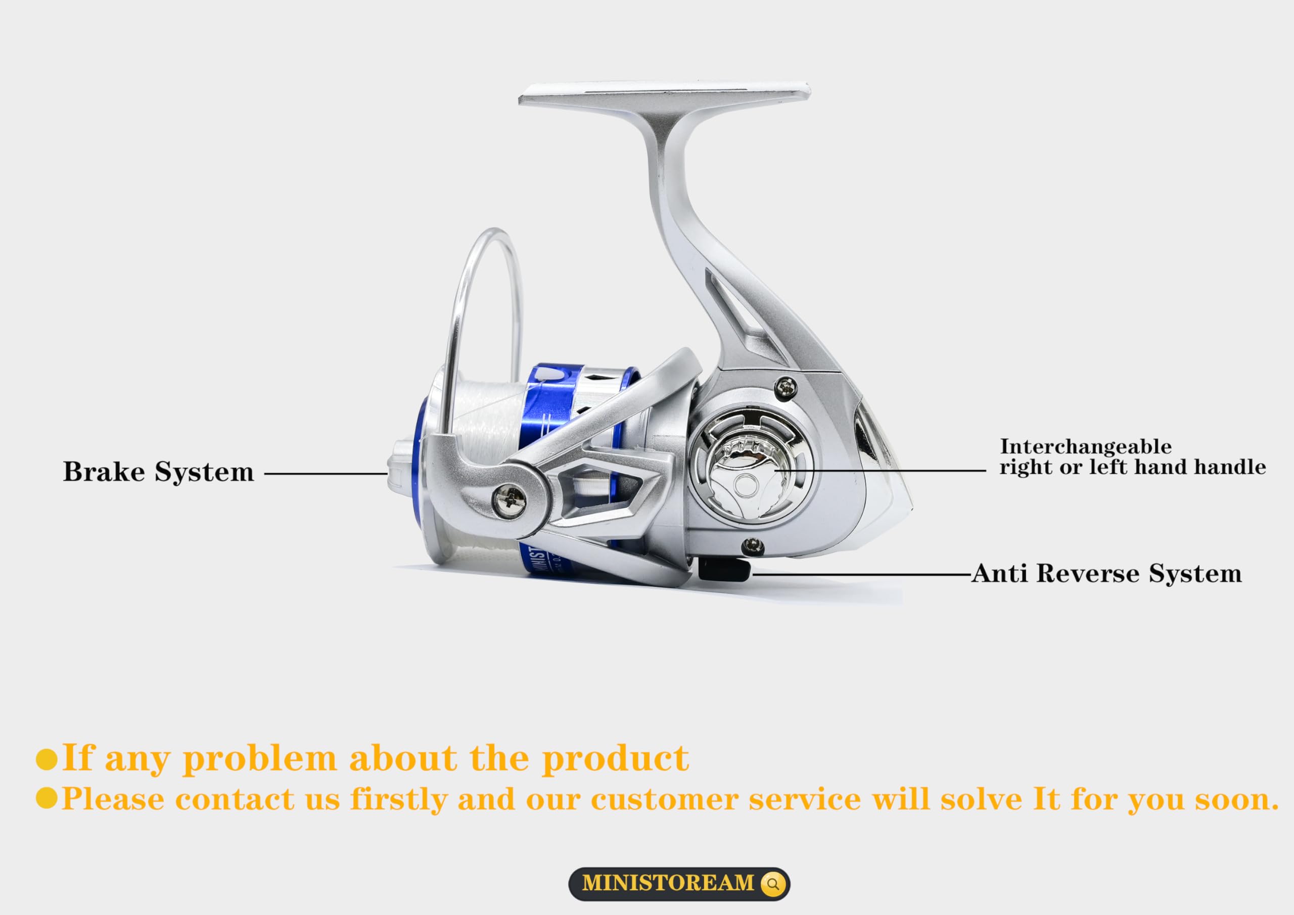 【2 x FF4000 Spinning Reels】The spinning fishing reels has a folding design, metal handles, and a more comfortable handshake. The reverse stop switch controls the forward and reverse rotation of the fishing wheel. The rocker arms can be exchanged left and right to meet different user habits.