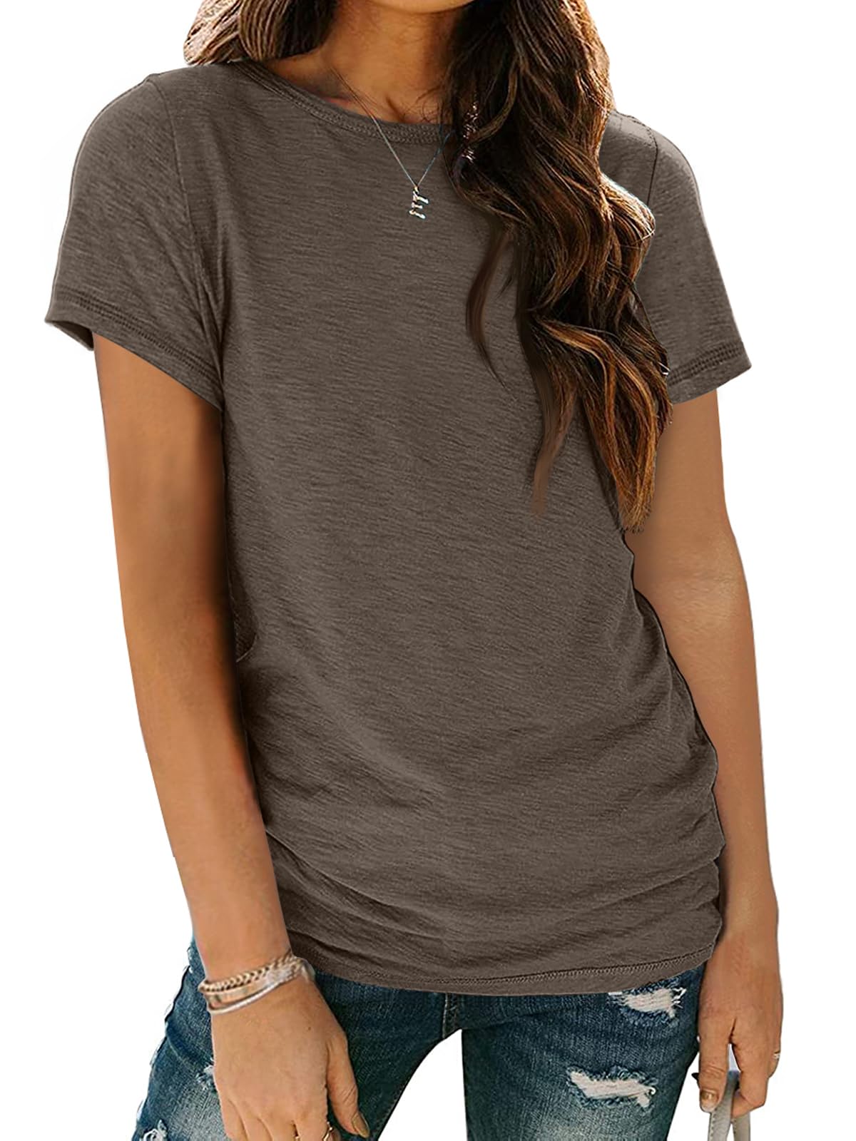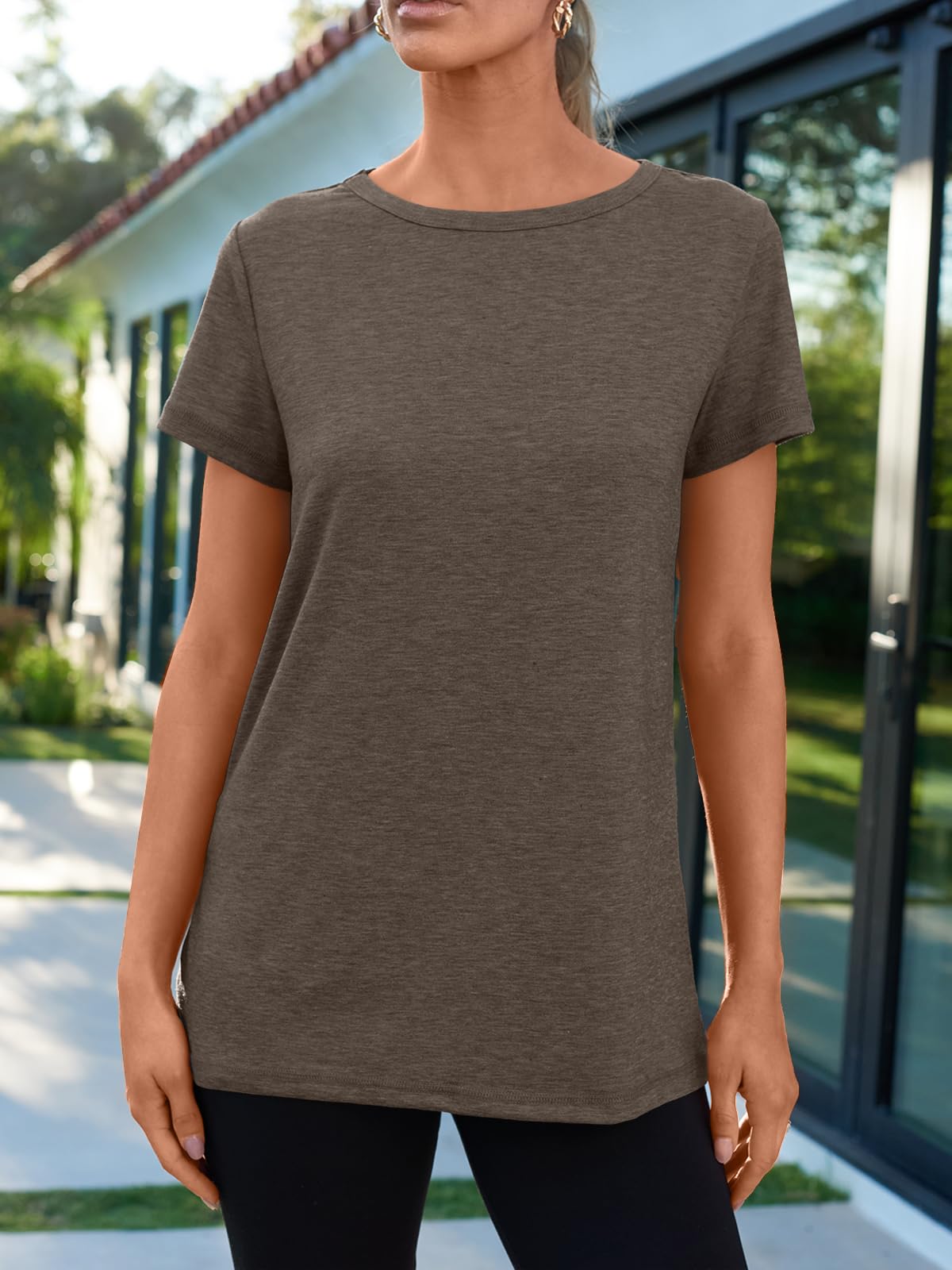 Refined Everyday Look: Featuring a timeless crewneck and clean, minimalist lines, this solid-color top offers a structured yet soft feel. It's a modern classic that instantly elevates your simplest outfits with a polished, put-together aesthetic—a dood choice for teachers and professionals seeking effortless style