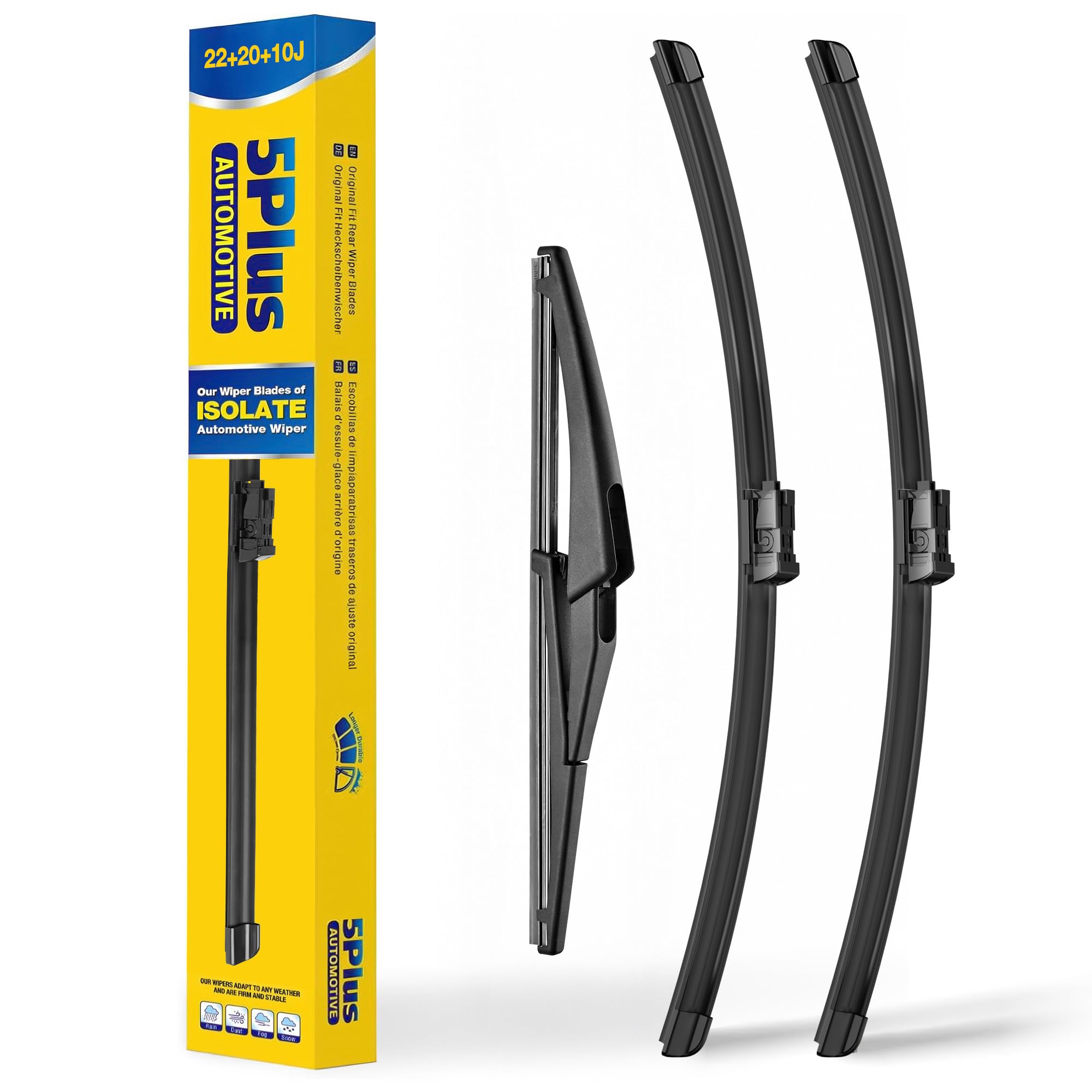 【3 PCS Windshield Wiper Set 】22 Inch Driver Side (Fit for Top Lock Arm) + 20 Inch Passenger Side (Fit for Top Lock Arm) + 10 Inch Rear Wiper Blade