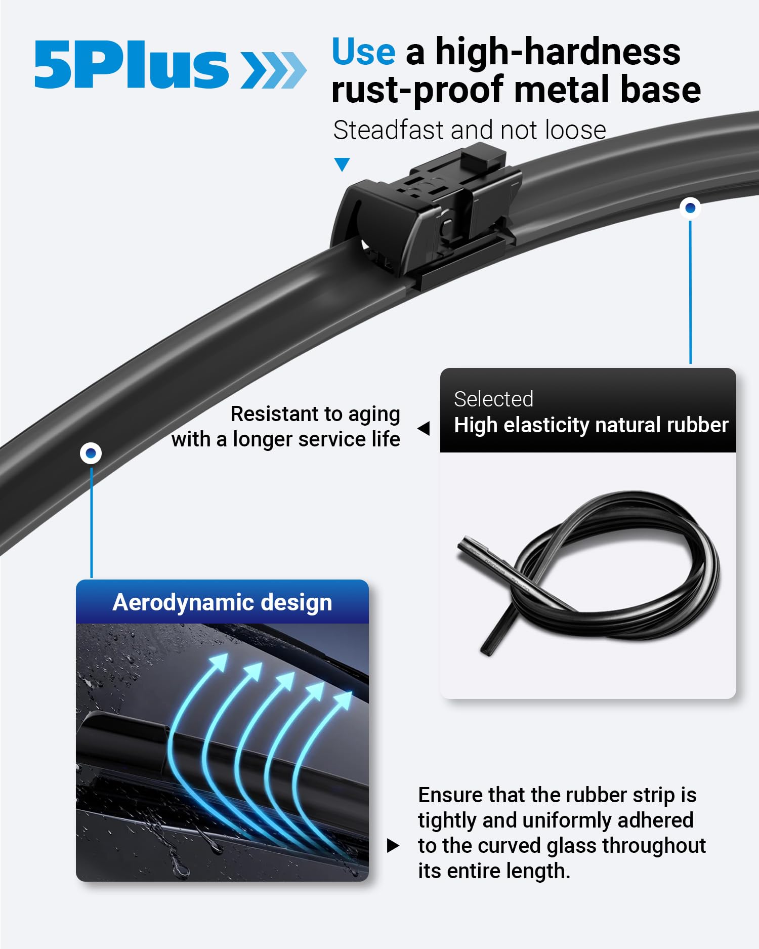 【Original Fit Replacement】5 Plus Wiper Blades Replacement For Jeep Renegade 2015 2016 2017 2018 2019 2020 2021 2022 2023 Windshield Wiper Blades(Set of 3)