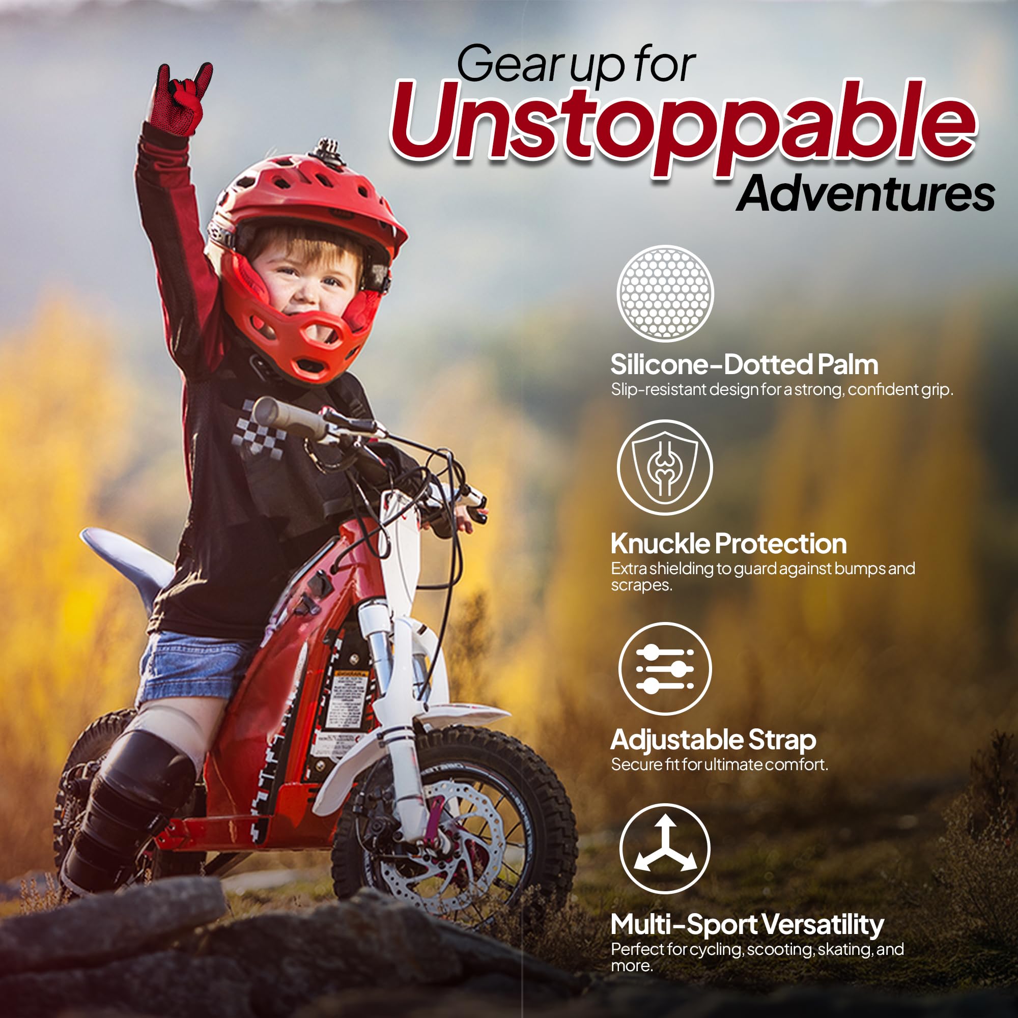 🚴 Kids Motorcycle Gloves for Every Adventure: Perfect for young enthusiasts, these gloves are ideal for motocross, dirt biking, cycling, and more. Whether it's boys or girls, they're the go-to motorcycle accessories for kids who love action-packed rides.