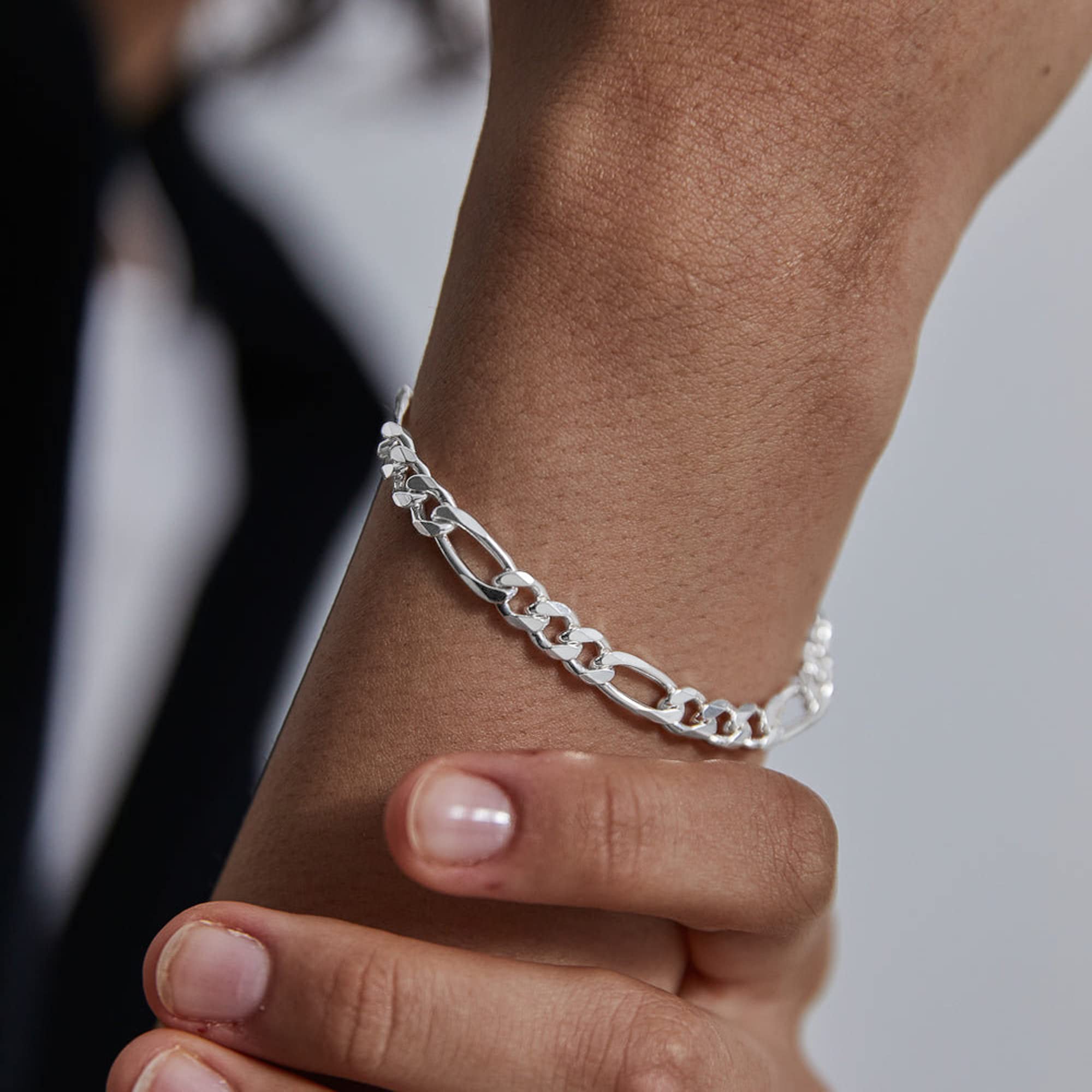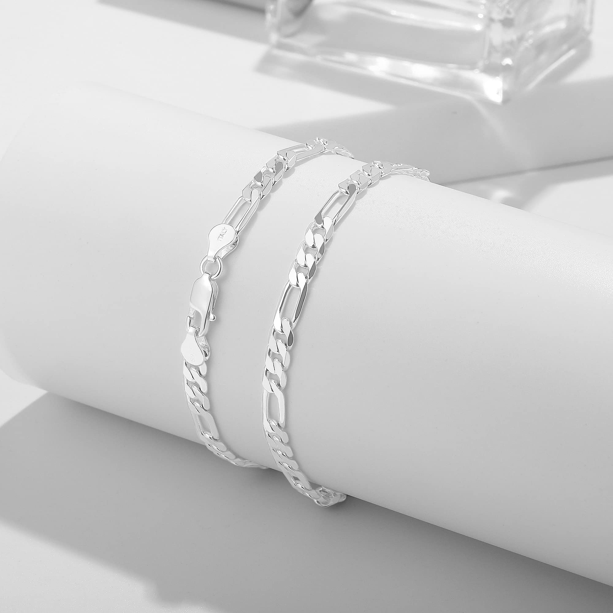 UNIQUE MENS SILVER BRACELET JEWELRY- Diamond cut crafts classic Figaro chain bracelet for men wear, high polishing crafts makes the silver bracelet smooth and brighter than others. A perfect jewelry for men wear or as a gift.