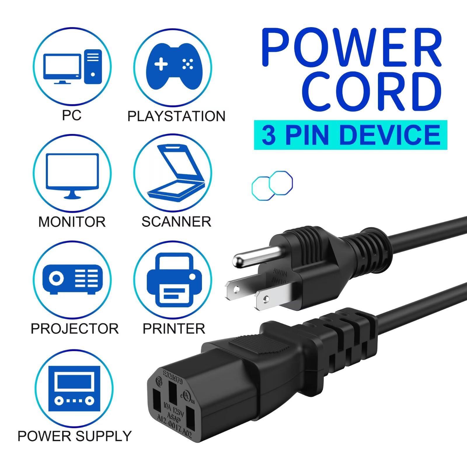 Compatibility: Universal power cable works with your laptop, monitor, television, printer, or other devices with a 3 pin connector