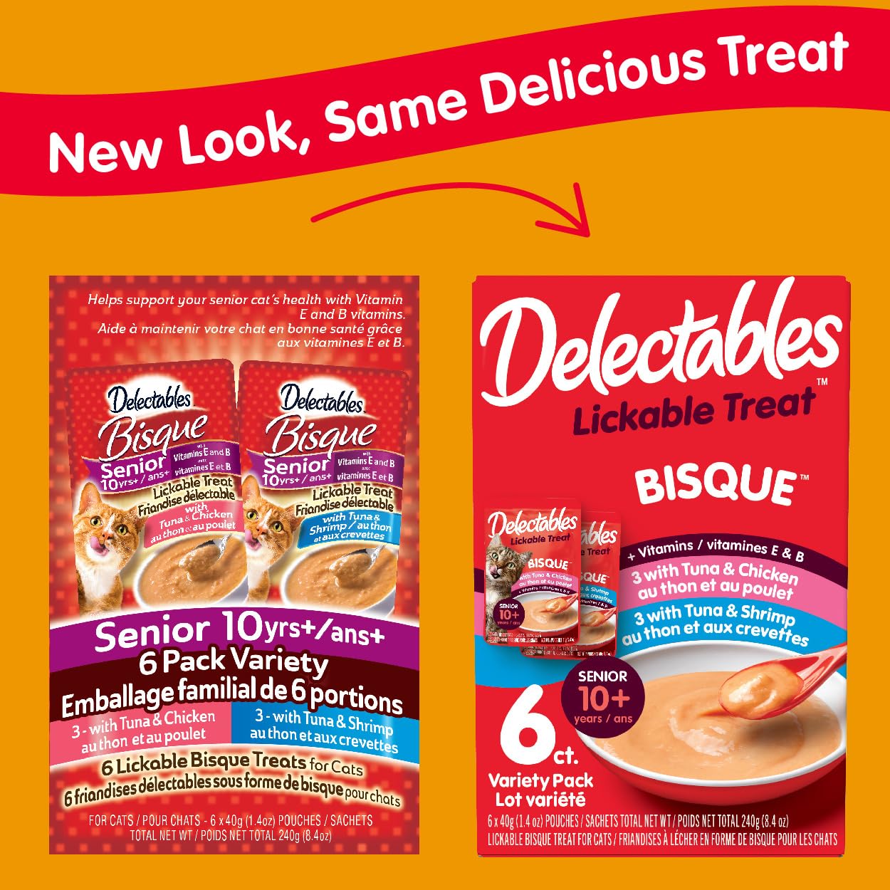 These delectable cat treats can be used as a quick cat snack or a cat food topper to entice finicky eaters. Hartz Delectables Lickable Cat Treats for Seniors are also available in stew, savory broths, chowder, soft pate, and squeeze ups.