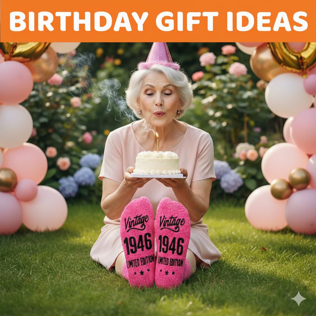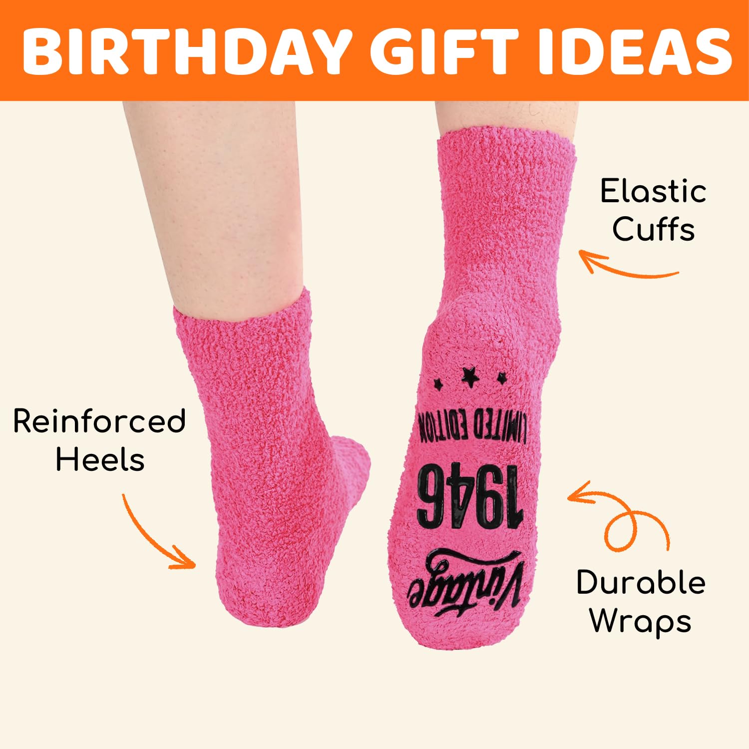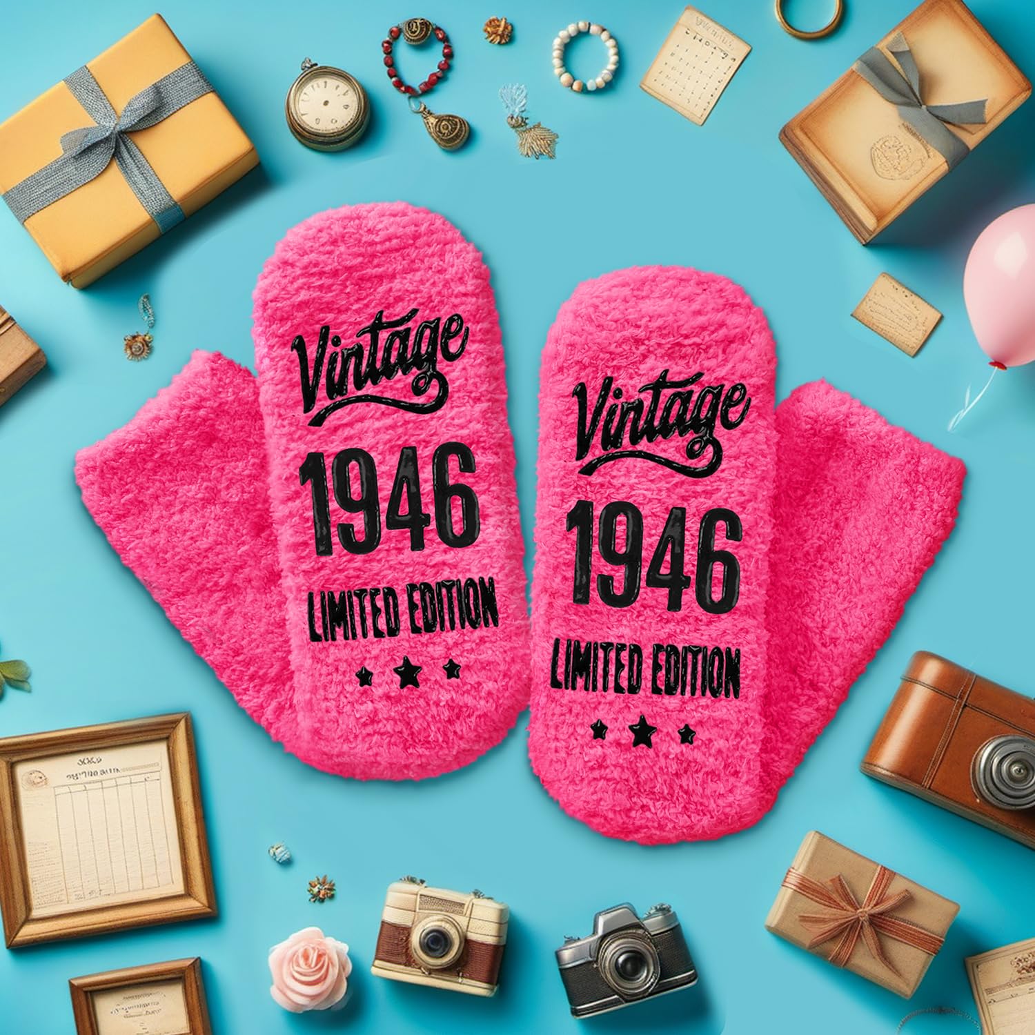 1946 BIRTHDAY GIFTS: Give her this perfect 80th birthday gift to remind her of joy. Her smile will widen when she reads "Vintage 1946 LIMITED EDITION"—practical, emotional, humorous socks for friends or family born in 1946!