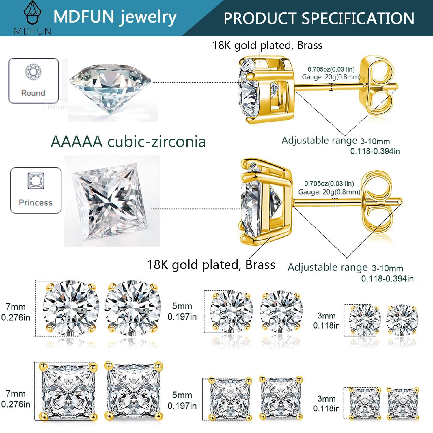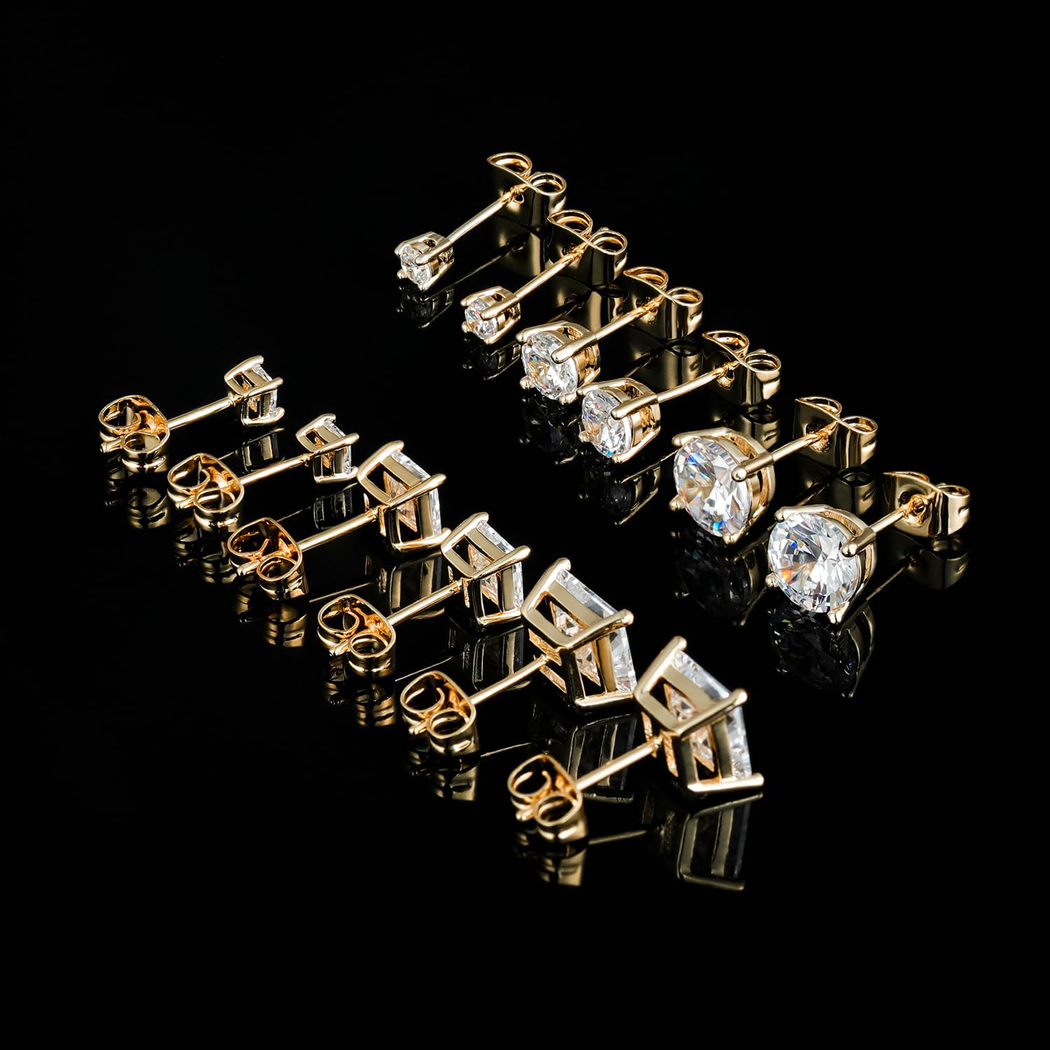 ❤Solid 18K gold plated stud earring set,butterfly lock,4 prongs mountinghigher quality cubic zirconia,suitable for women and men.