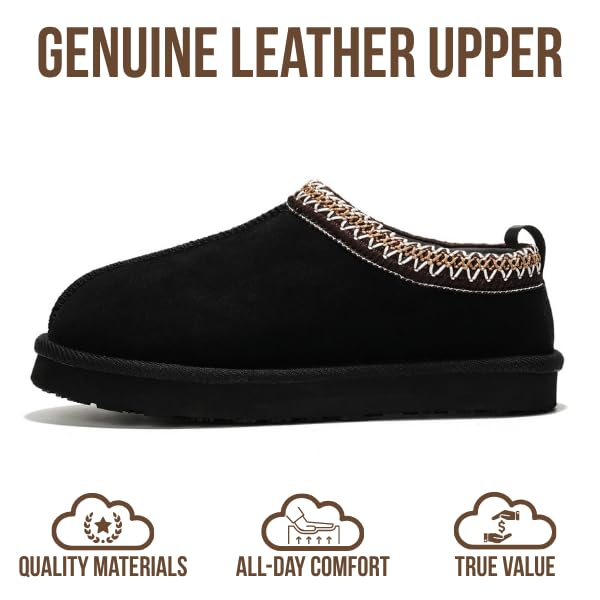 ๐๐ฒ๐ป๐๐ถ๐ป๐ฒ ๐๐ฒ๐ฎ๐๐ต๐ฒ๐ฟ ๐จ๐ฝ๐ฝ๐ฒ๐ฟ: Real Leather resists scuffs, holds its shape, and ages beautifully for a polished look on womens slippers. The sturdy upper supports a secure slip-on fit while staying breathable over the plush shearling liningโperfect house shoes for women & women's slippers that feel luxe yet everyday-ready.