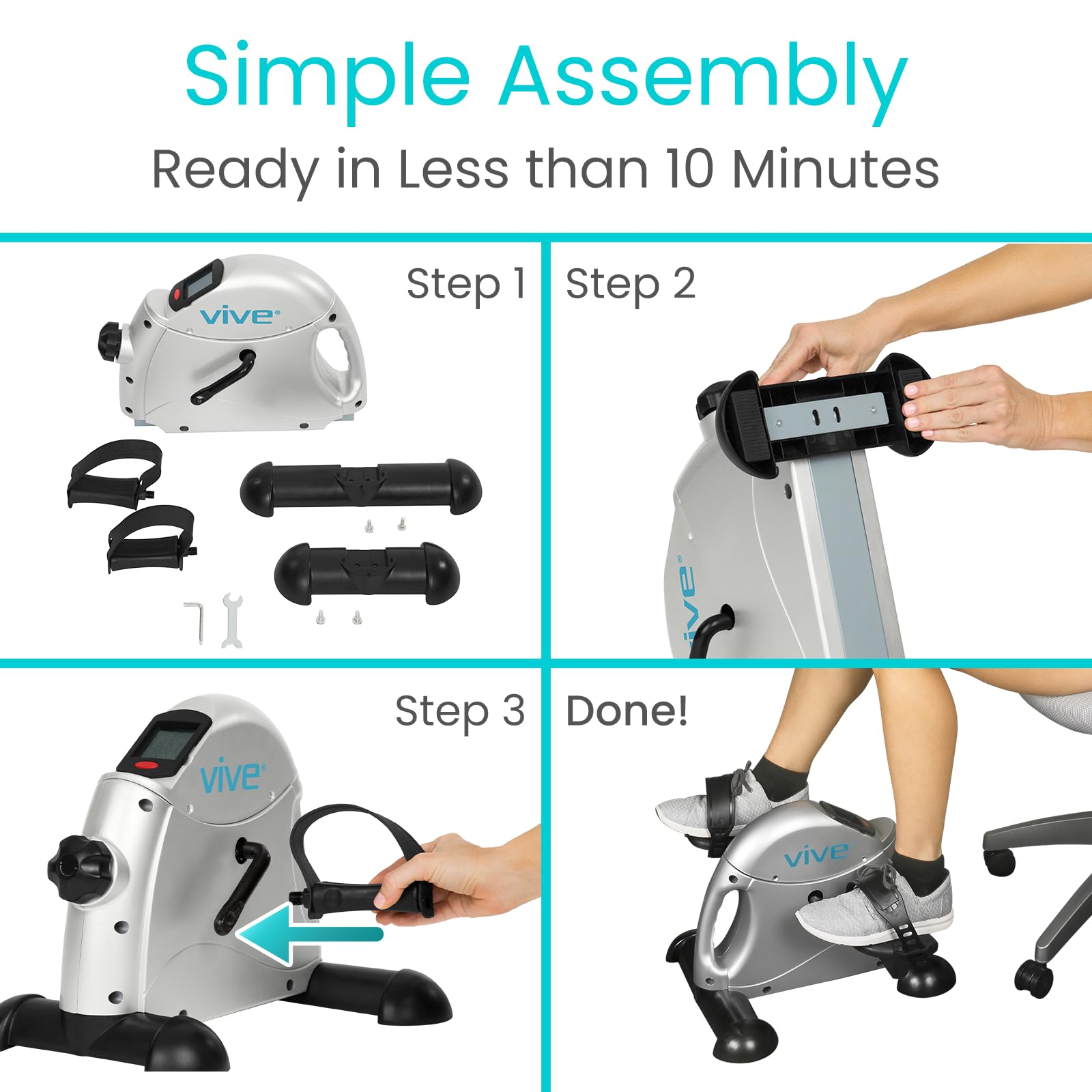 GREAT FOR TONING MUSCLES AND IMPROVING CONCENTRATION: Compact pedal exerciser can be used to strengthen arms and legs, increasing circulation, improving stamina and relieving tension for greater focus and concentration. Quiet and smooth pedal operation allows the Vive pedal exerciser to be used in the office as well as at home. Use while on your phone, watching tv, or playing video games to include beneficial exercise in your day.