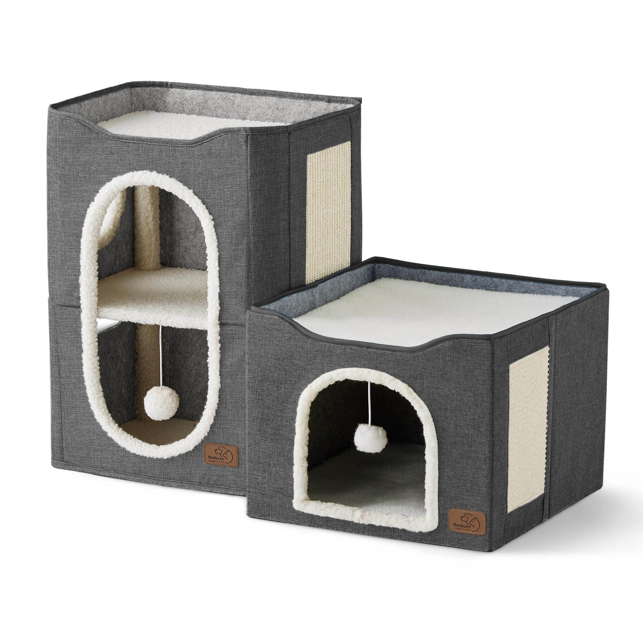 Snug, Private & Full of Fun: Your fur baby gets two spacious hideaways to curl up in, while the upper platform doubles as a perch for some me-time or window-watching. Bonus: the peek-a-boo openings and fluffy toy ball amp up the fun!