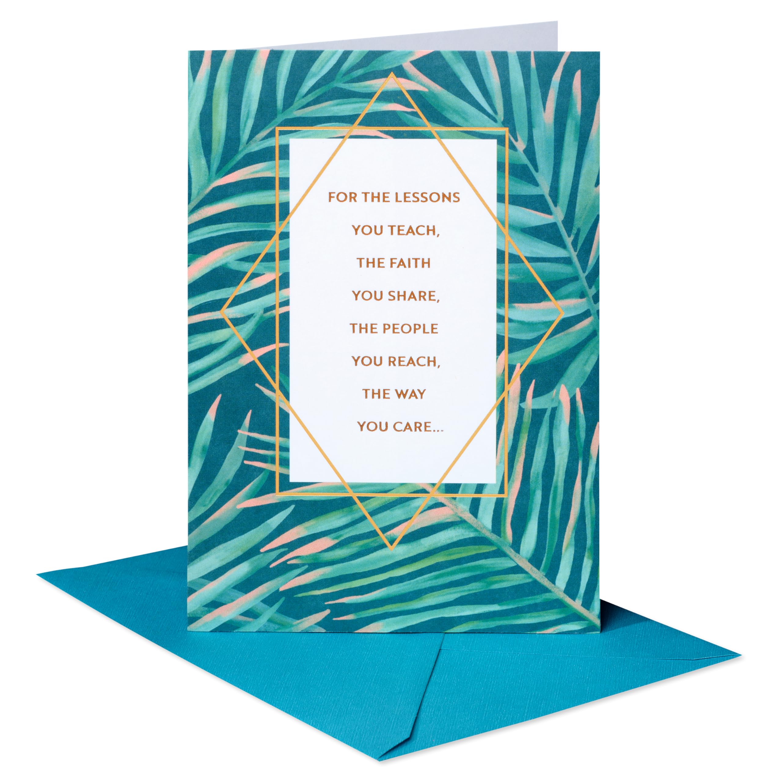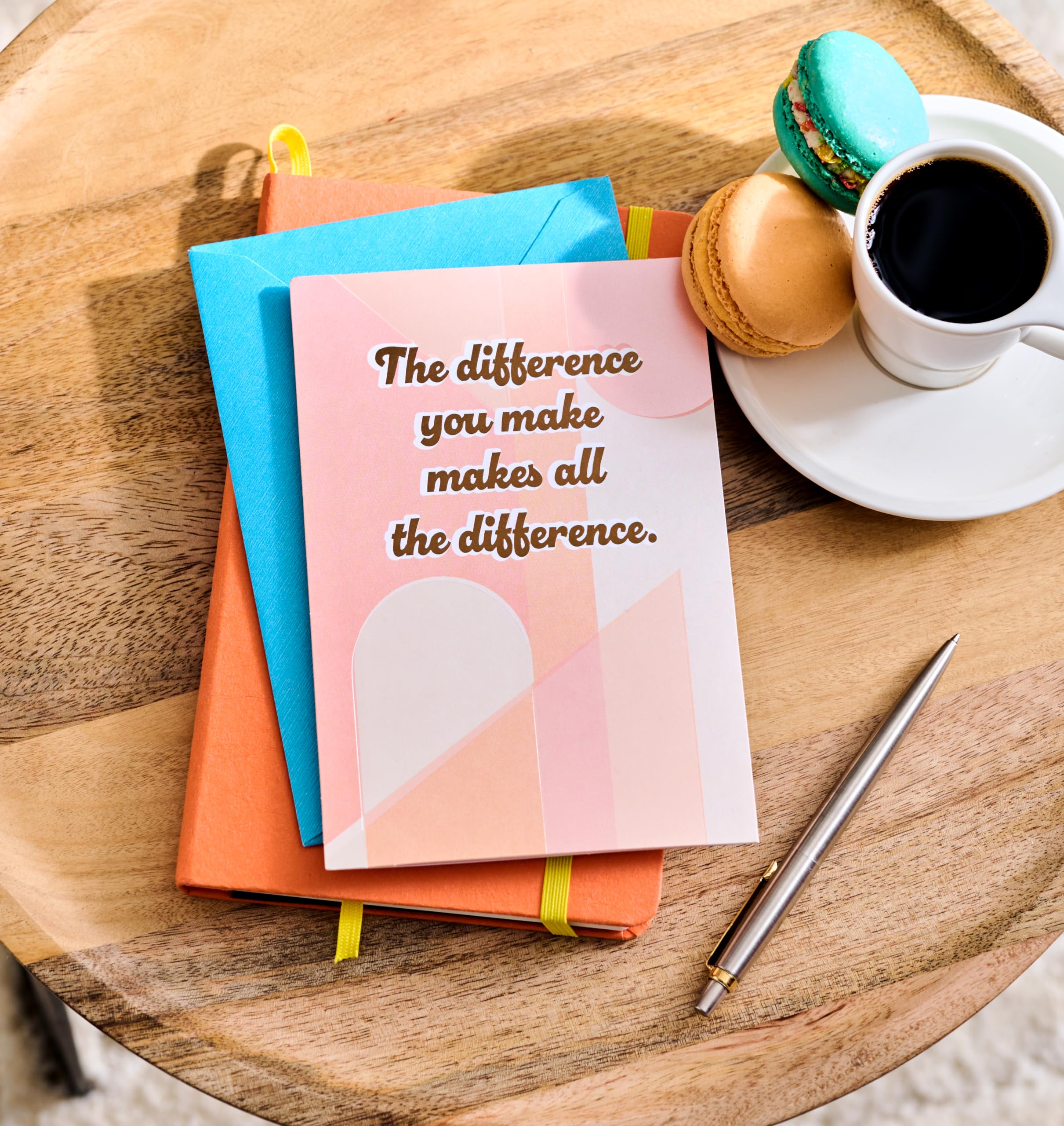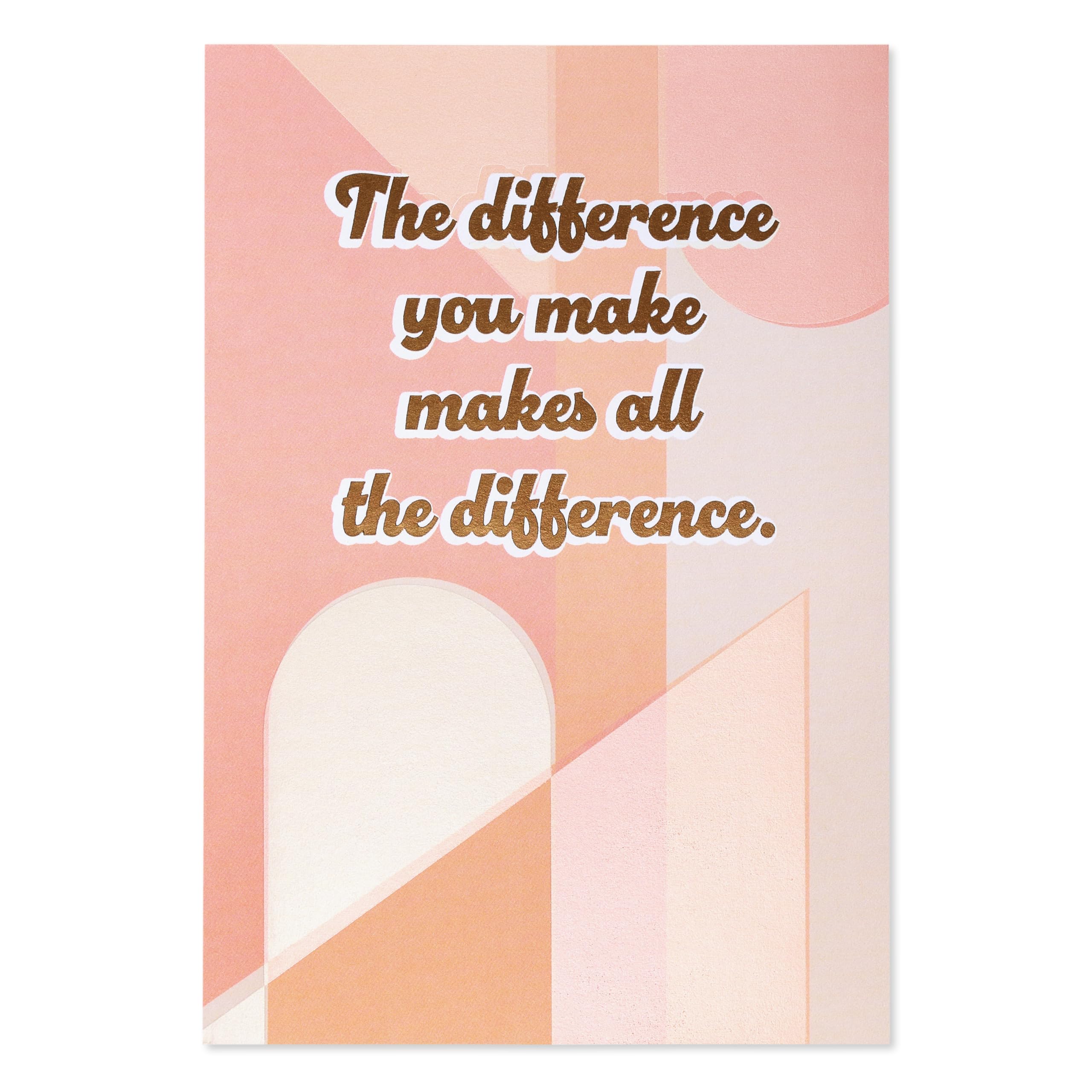 Send some sincere thanks to someone who makes your world better with this greeting card. The front features lettering on an abstract peach and cream background accented with dark bronze and pearl foil. The simple message is perfect for showing your appreciation to anyone who has made a positive difference in your life. Blue envelope included.