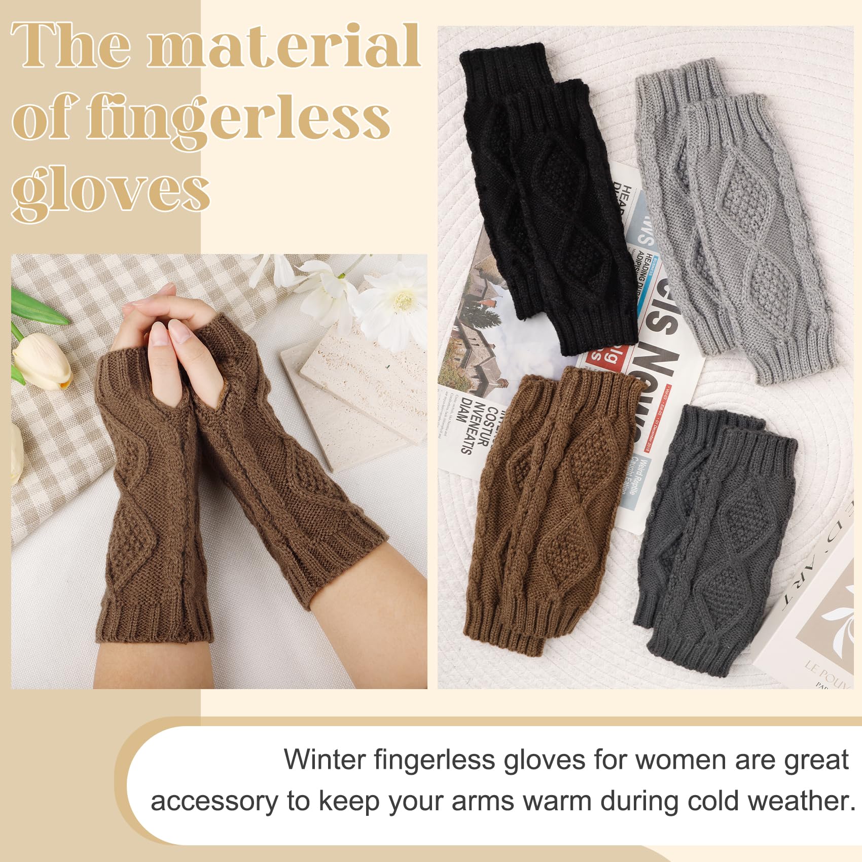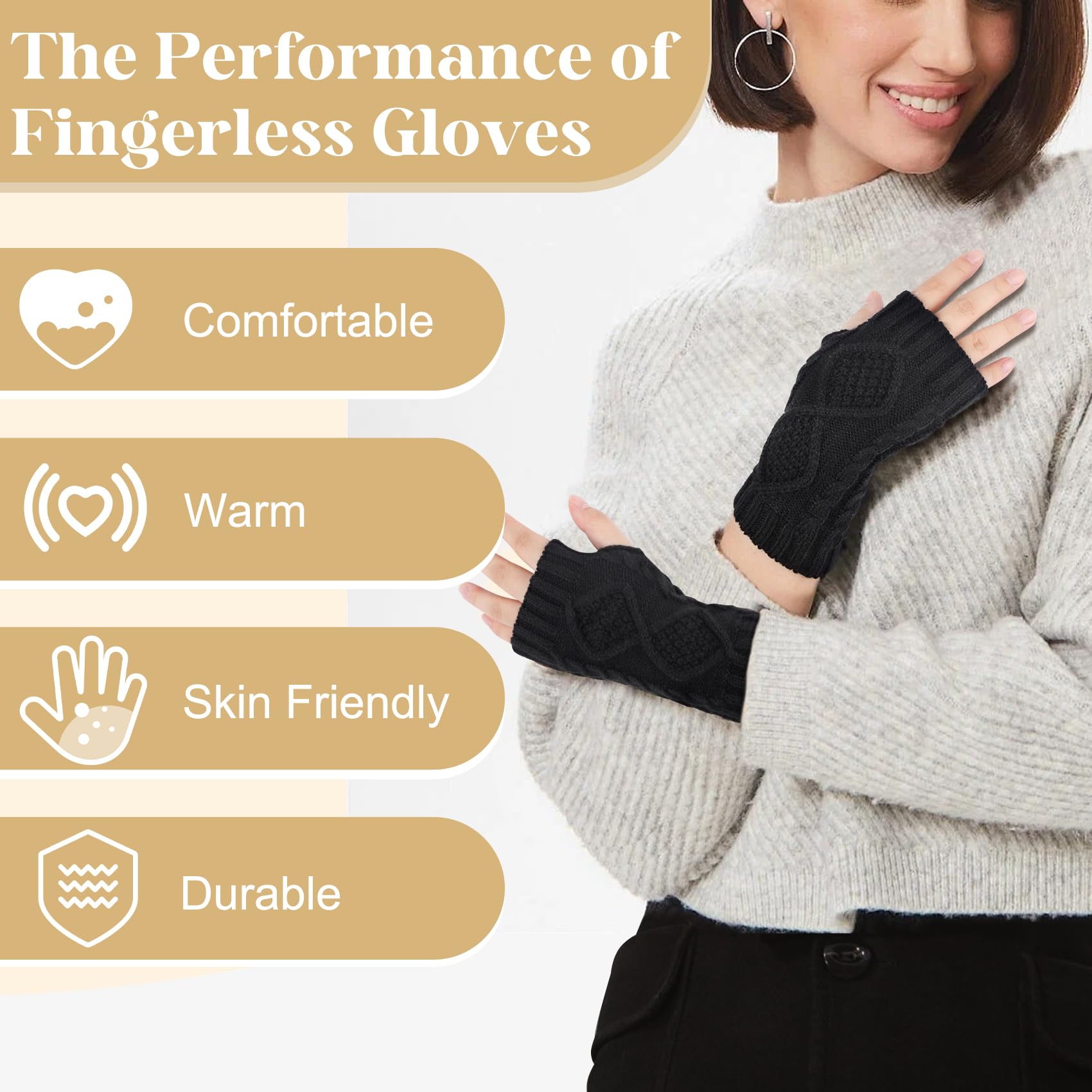 Warm Material: Winter fingerless gloves for women are made of acrylic; It's soft, comfortable and skin friendly, a great accessory to keep your arms warm during cool and cold weather; Wear this warm hand warmers gloves to bring you comfortable, stylish and durable use experience