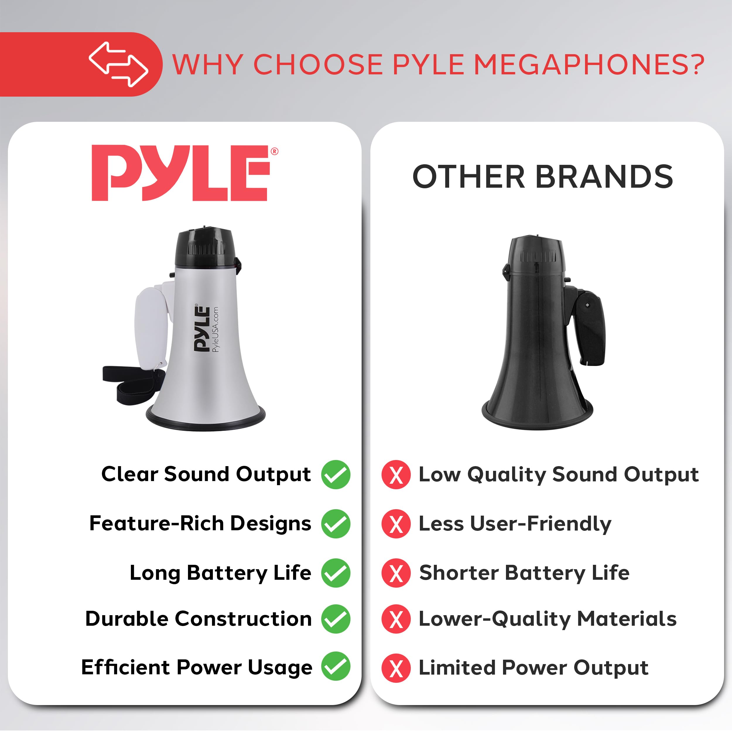 HIGH-POWERED PA SOUND: This bullhorn megaphone has a high-powered PA sound and the audio projection range is up to 400+ yards. There’s an adjustable volume for noise control during different situations