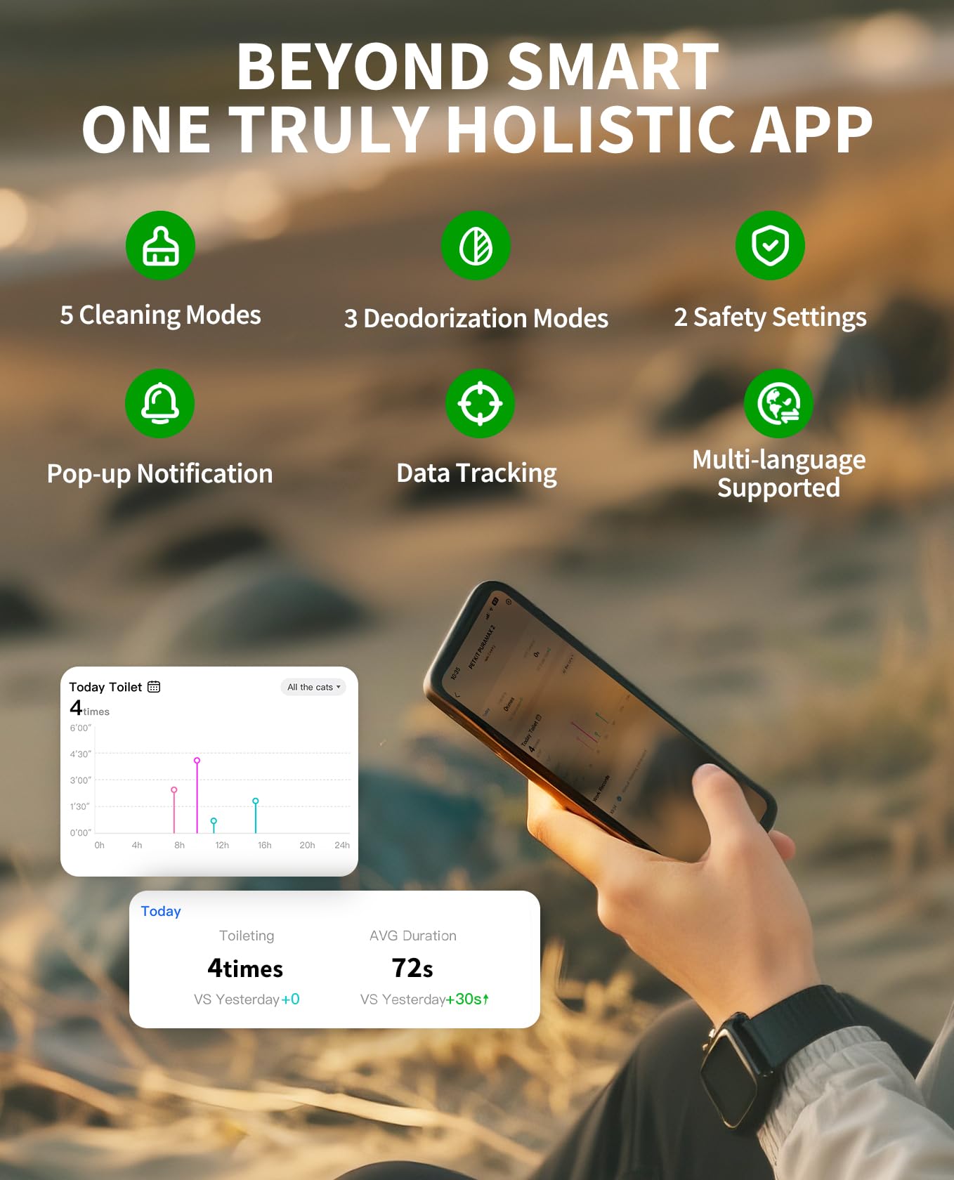 Smart App Control: 2.4GHz enabled, all-in-one app for holistic toilet data and remote control. With the PETKIT smart app, you can track the litter box usage data, check working status and set cleaning modes. The smart litter box automatically identifies cats based on their weight.Each cat’s weight,toilet frequency and duration will be recorded on the app. By tracking the clear data records, you will gain more insight into your pet's health and identify any irregular occurrences.