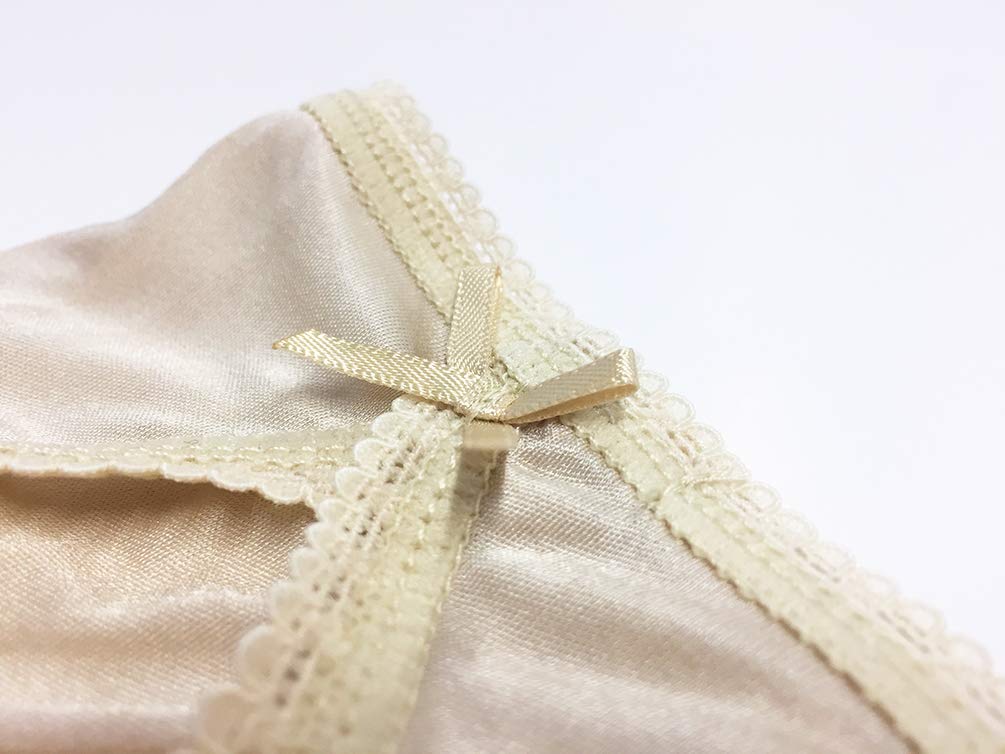 100% silk knitted fabric (except picot trim and front bow) , Stretchy fabric bikini panty flatter the good shape of your hip