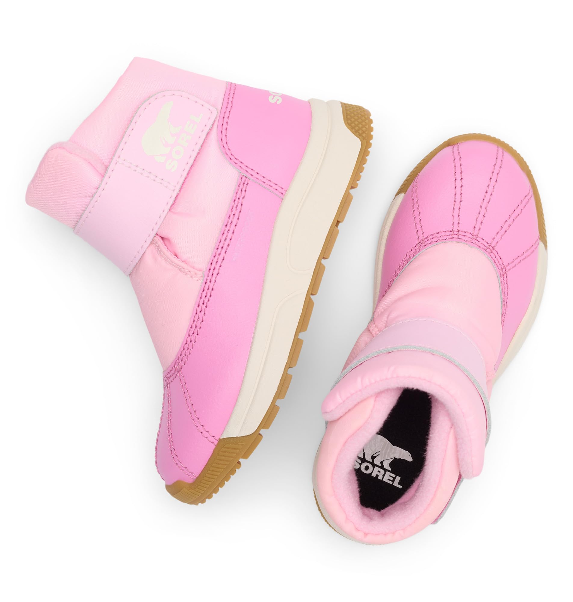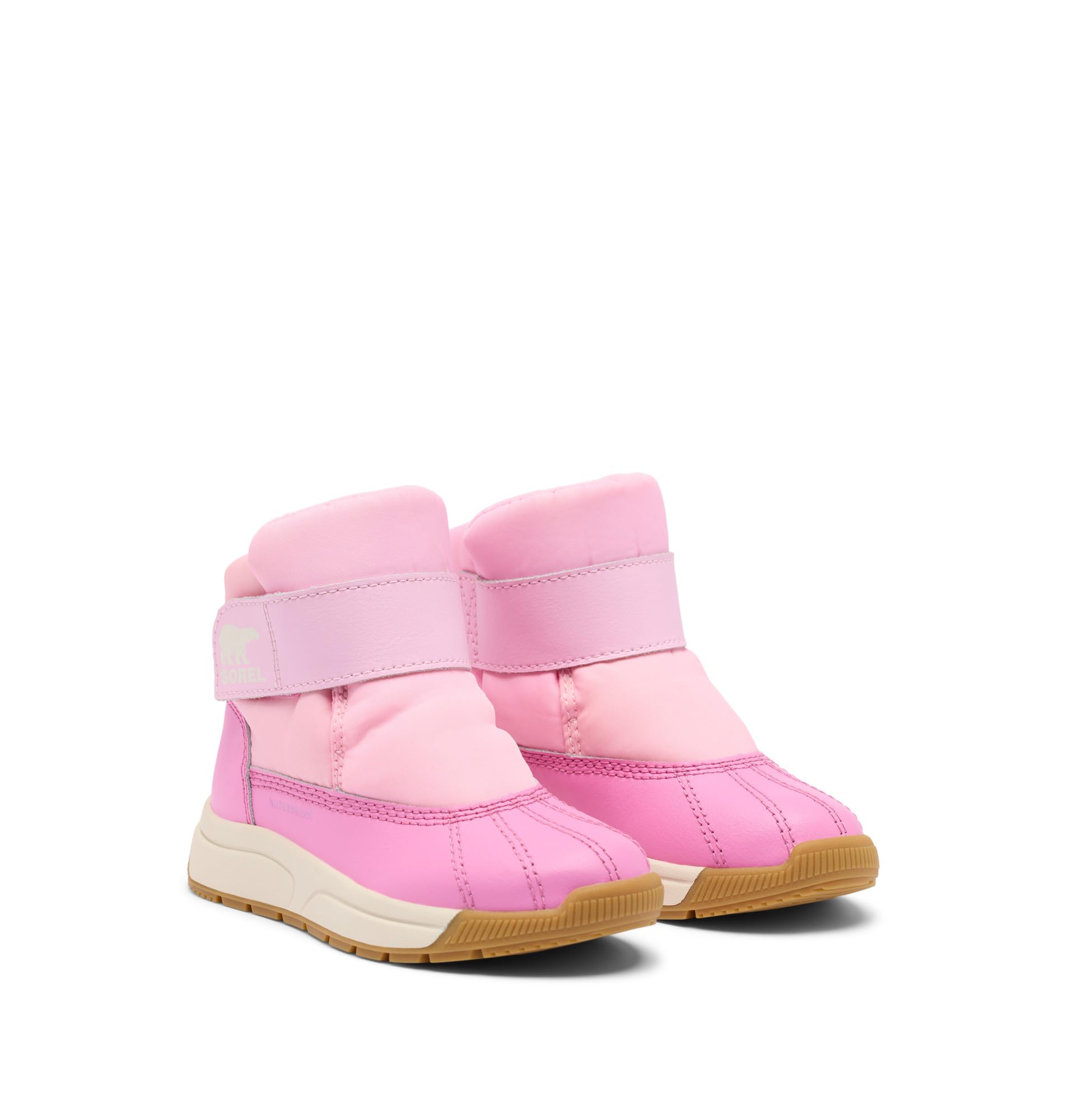 Waterproof nylon upper and PU coated synthetic overlays. Microfleece lining. Waterproof bootie construction. Velcro strap closure. Nylon heel pull tab.