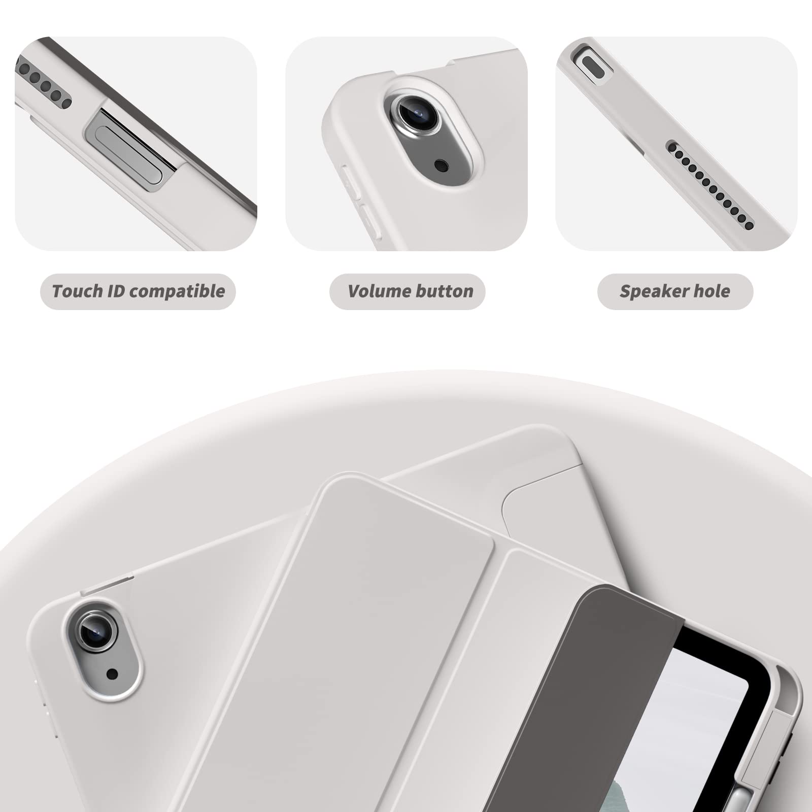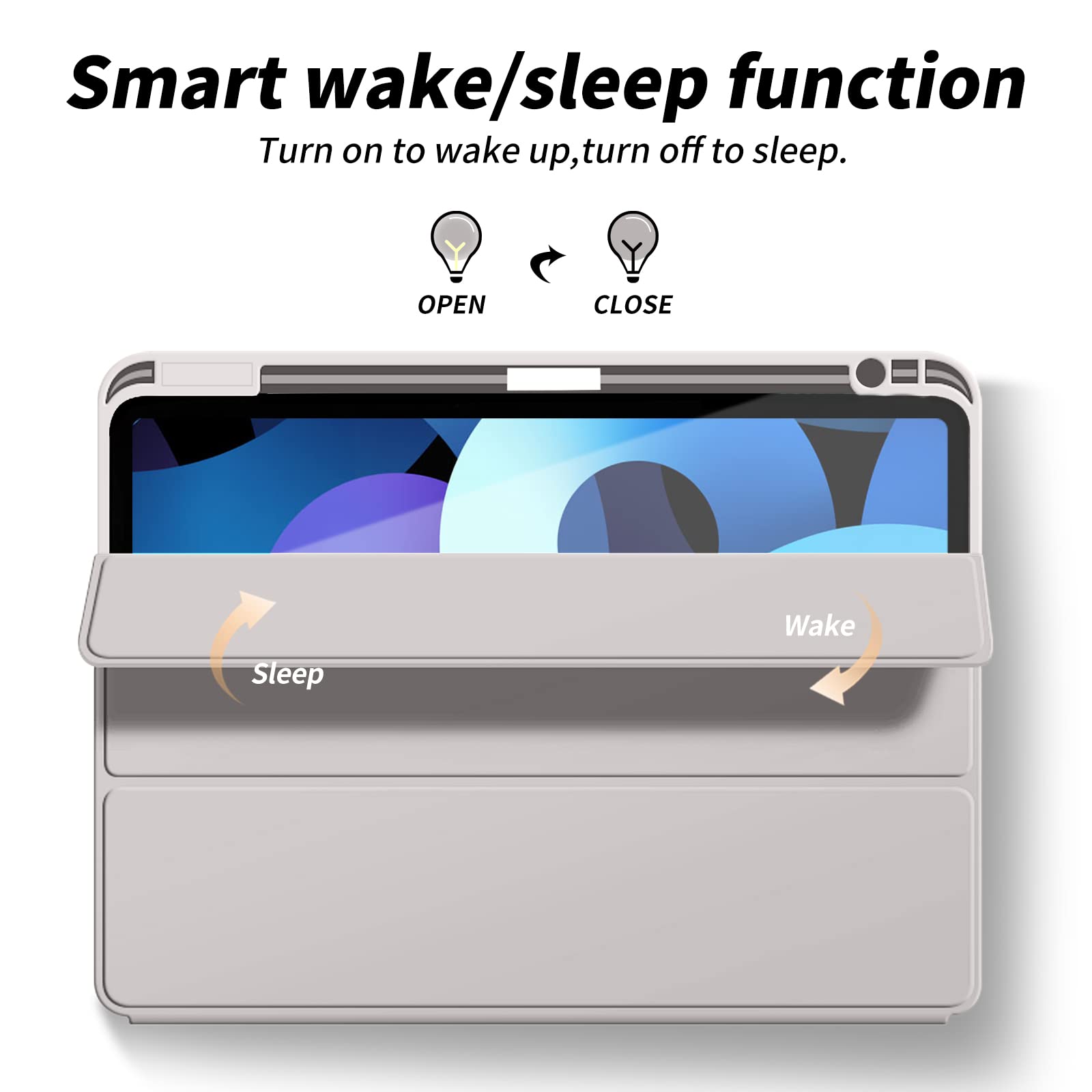 【Auto Sleep/Wake 】Built-in magnetic strip, our iPad Air 11 inch and ipad air 5th/4th 10.9 inch case automatically wakes or puts your tablet to sleep when the lid is opened and closed, protects and extends battery life; Easy access to all features and controls even with the case on.(Support Touch ID)