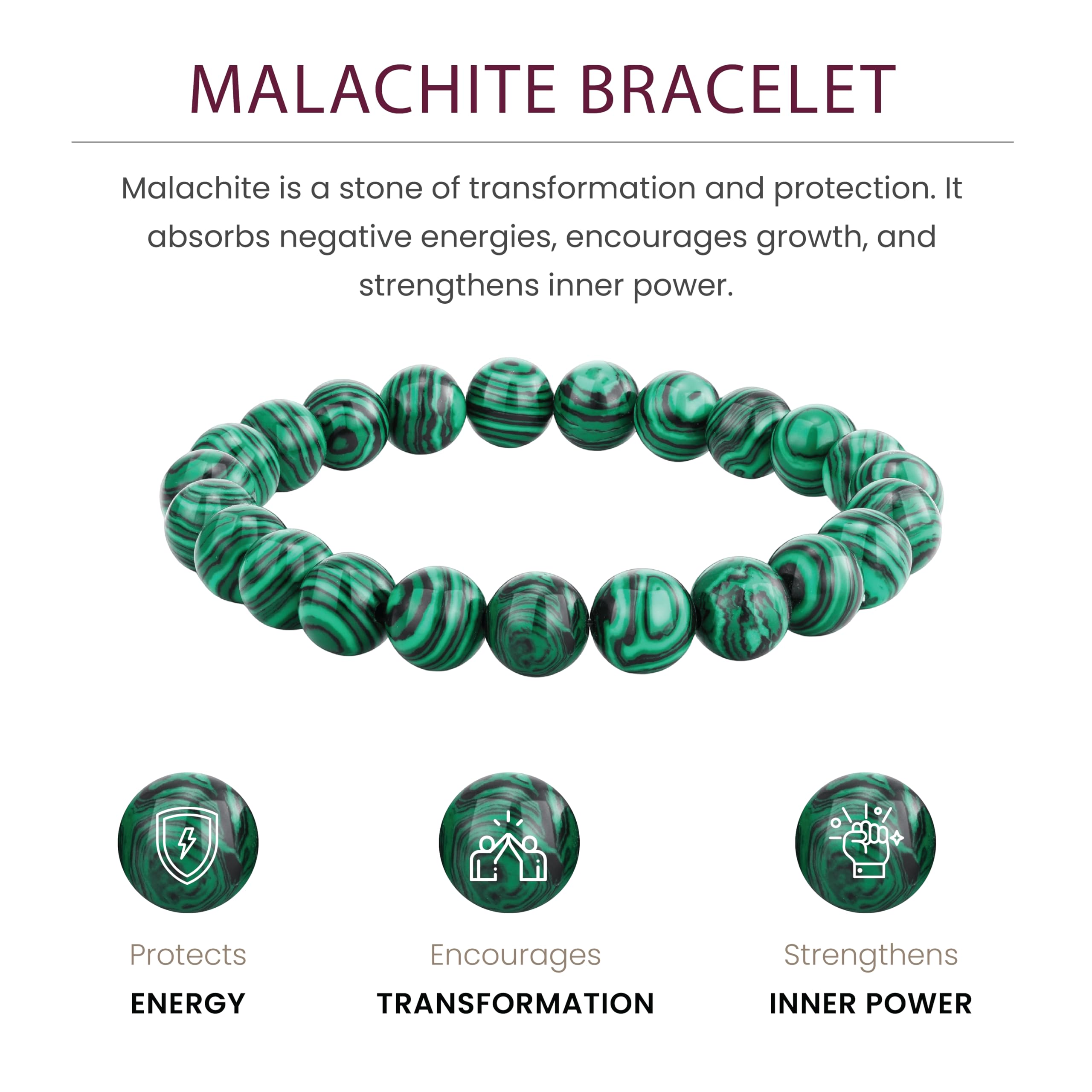 Description Elevate your energy with the transformative power of Malachite, the ultimate stone for protection, healing, and growth. This natural crystal bracelet blends timeless beauty with spiritual strength, making it the perfect companion for meditation, manifestation, or everyday wear. Handcrafted with care, it brings both style and positive energy to your journey.