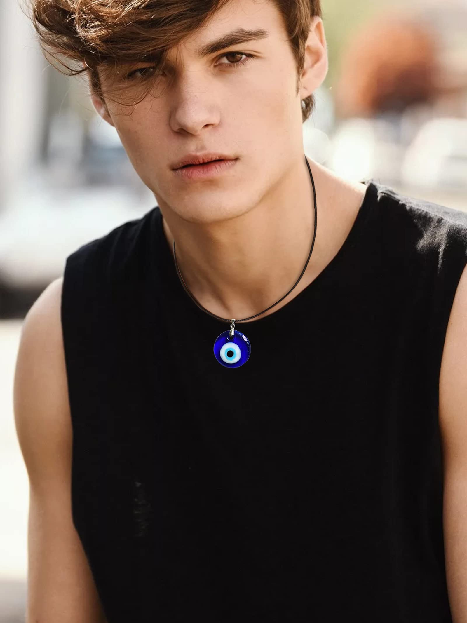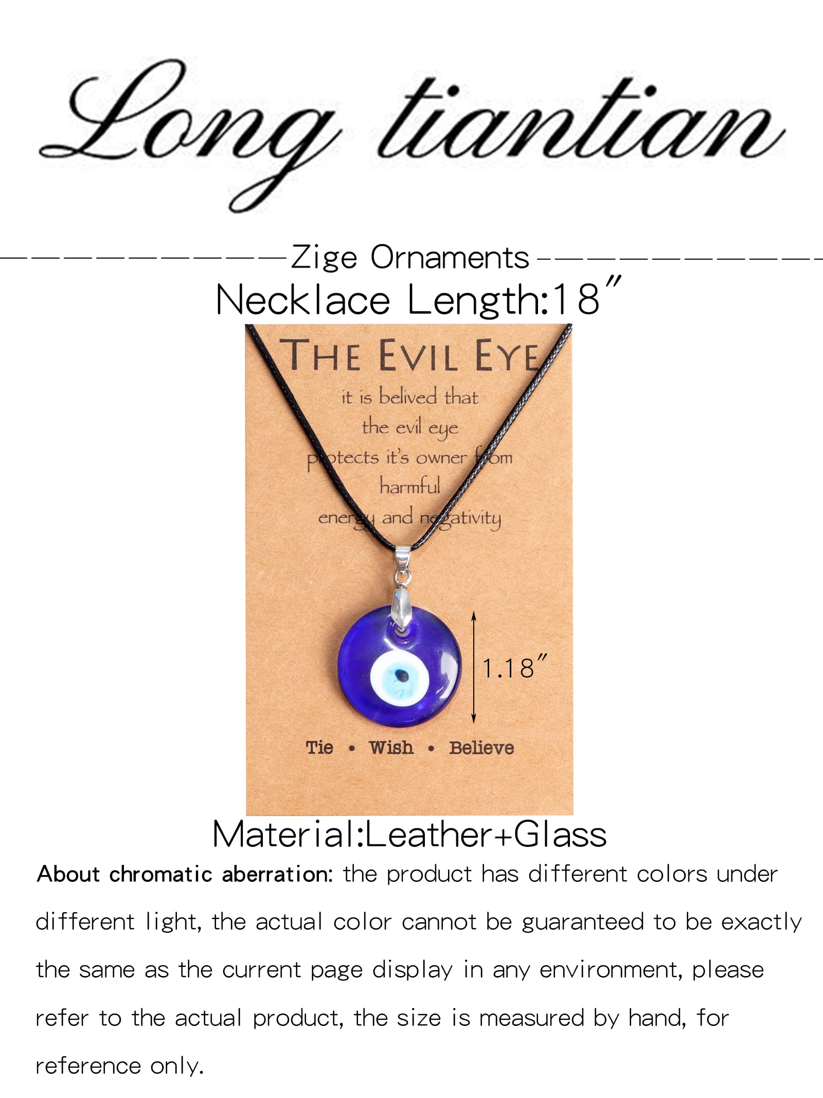 BLUE YE NECKLACE FOR WOMEN MEN:Our Evil eye necklace is suit for male and female. Chain Length is 17.8in + 2in,Pendent Size is 1.20in ,This evil eye pendent necklace will make you stay away from bad things,it it a luck and protect feather necklace for you!