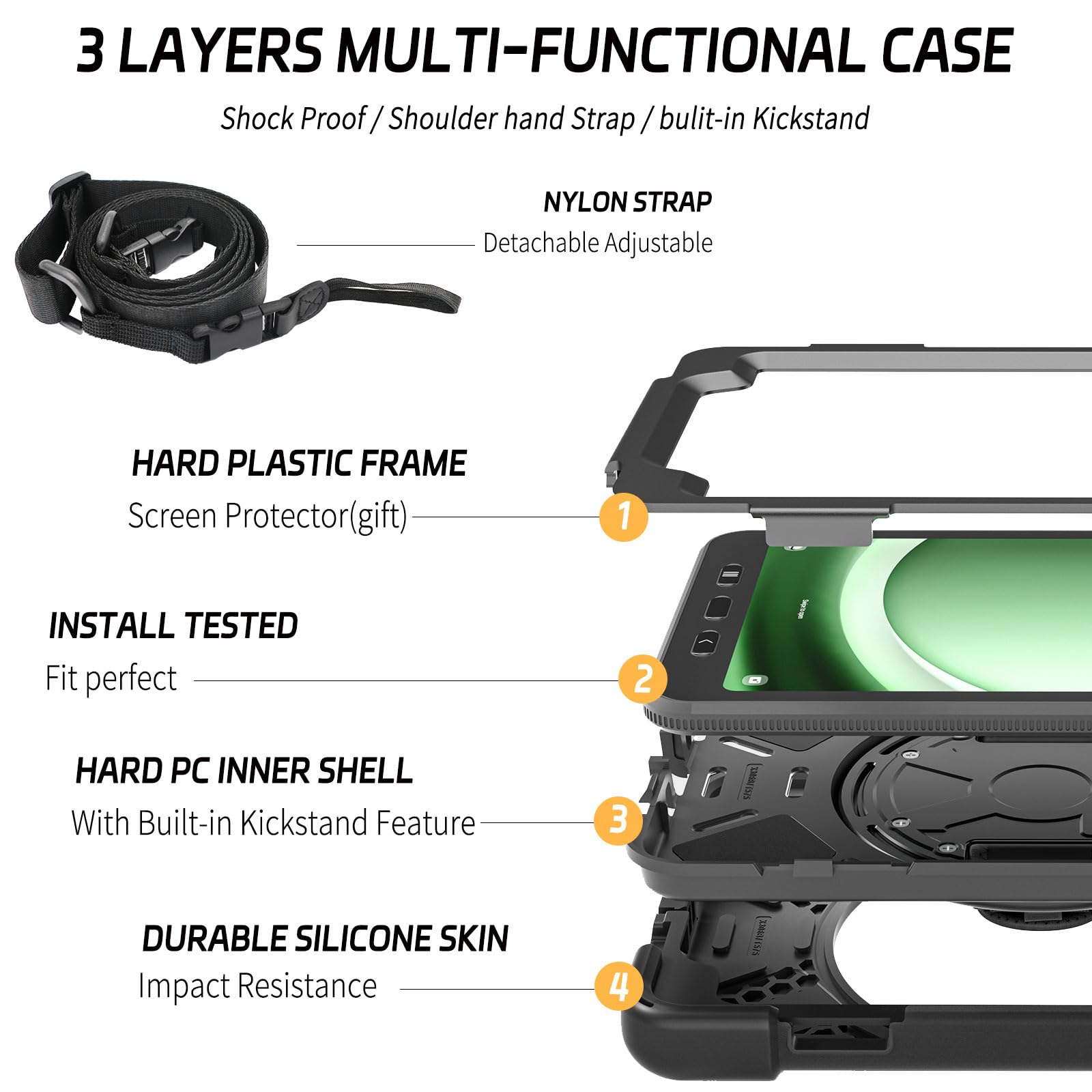 ๐ ๐๐๐ญ๐ฎ๐ซ๐๐ฌ: โ Connected with 360ยฐ turntable built-in kickstand, you can adjust your galaxy tab active5 tablet, perfect for watching videos and chatting.โก Adjustable hand strap allows big hand and small hand, perfect for kids and adults to use tab active5 during work, study or journey, ideal for students ,teachers, engineers, cashiers and waiters, etc โขAdjustable and detachable Shoulder belt is very convenience and safe