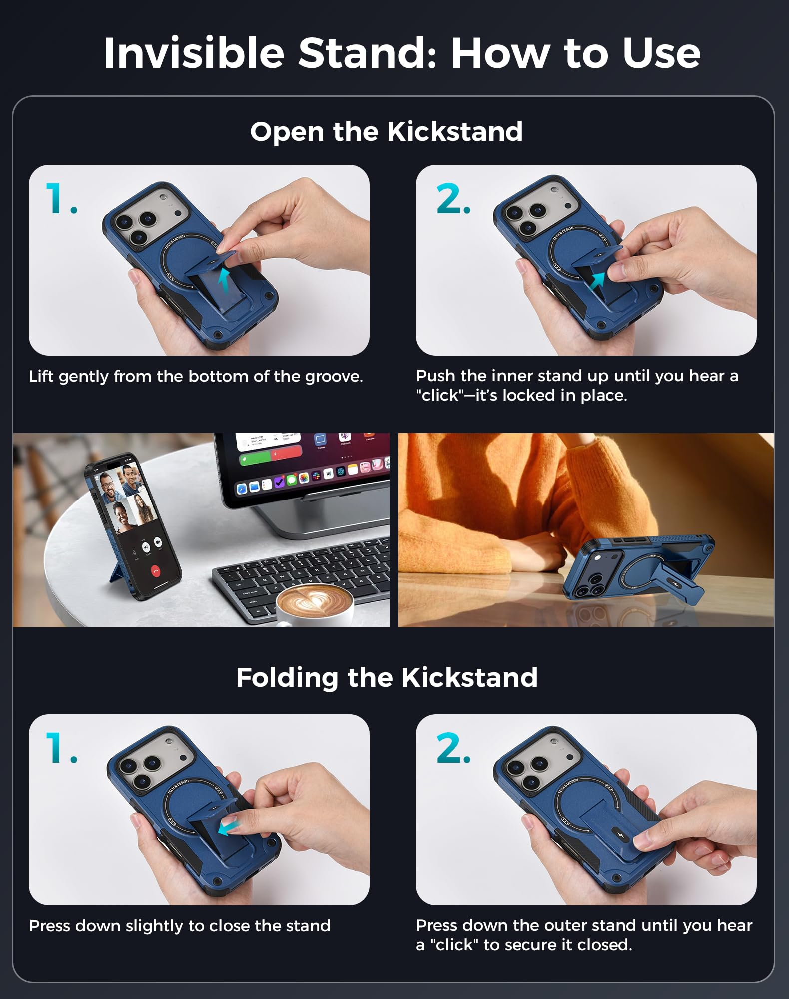 Invisible Stand for Hands - Free Enjoyment: The phone case for iphone 17 pro max features an invisible stand, making it perfect for various hands - free scenarios. Whether you're watching a movie at home, having a video call with friends and family, or following a cooking tutorial in the kitchen, this stand allows you to prop up your phone at a comfortable angle and enjoy a convenient and relaxing experience