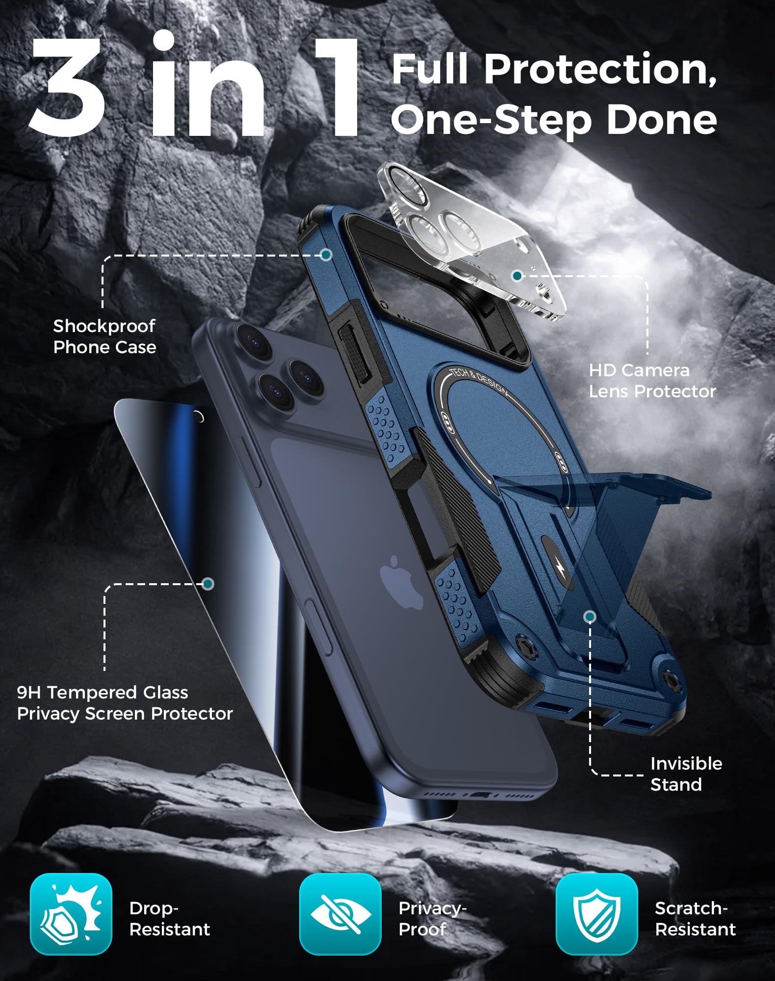 3in1 Comprehensive Protection for iPhone 17 Pro Max: Comes with a 26 degree anti-peep front screen protector, a high-definition transparent camera lens protector and a hard pc phone case for iphone 17 Promax, offering 360 degree full-body protection. Ideal for those who are always on the go and need to keep their phone safe from scratches, dust and drops during daily activities, like commuting, traveling or doing sports