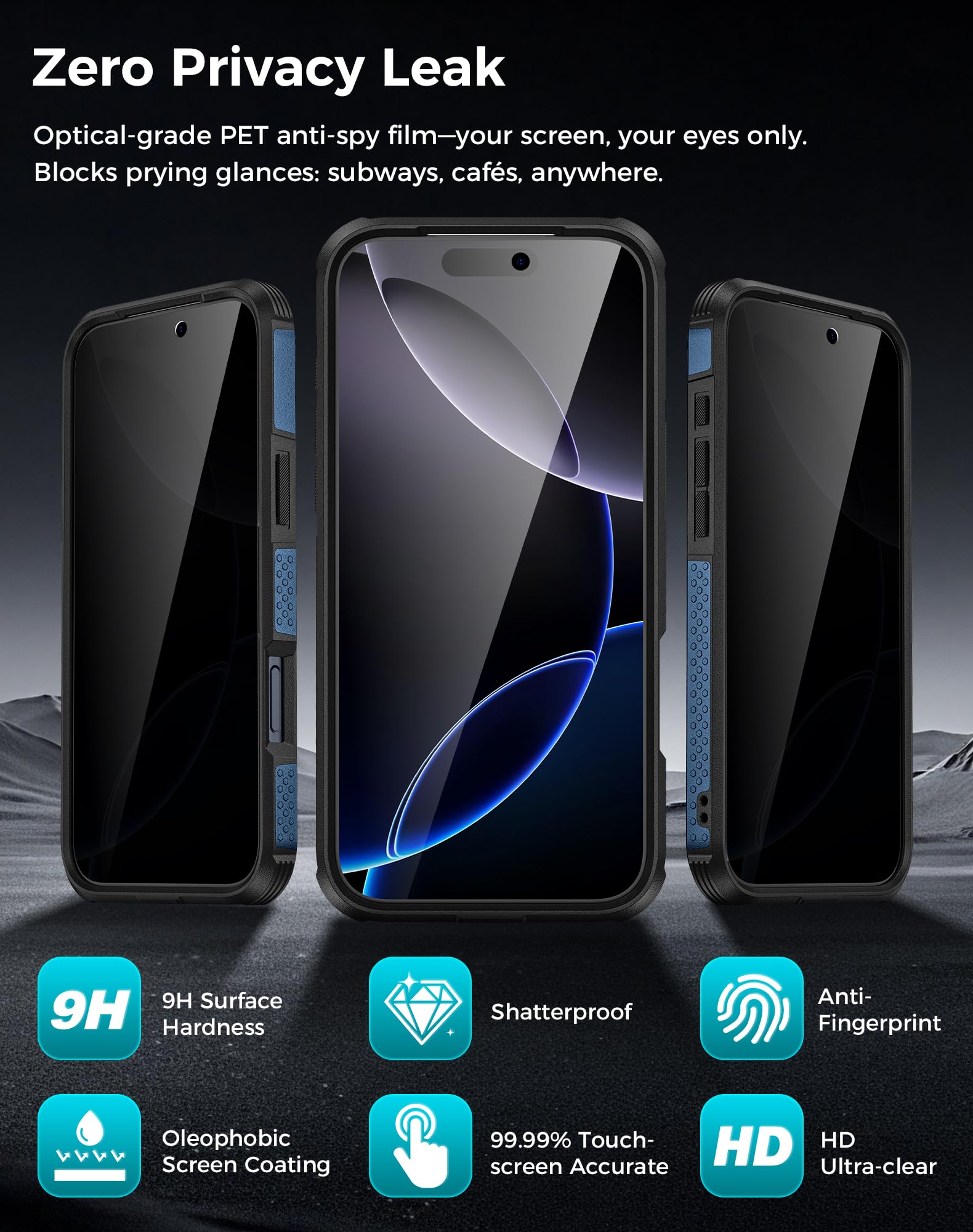 Privacy - First with Anti-Peep Film: Our 9H tempered privacy screen protector with 26 degree anti-peeping technology is a must-have for privacy lovers. Whether you're using your phone in a crowded subway or a busy coffee shop, it effectively shields your personal information from prying eyes, while maintaining 100% screen sensitivity for a smooth touchscreen experience
