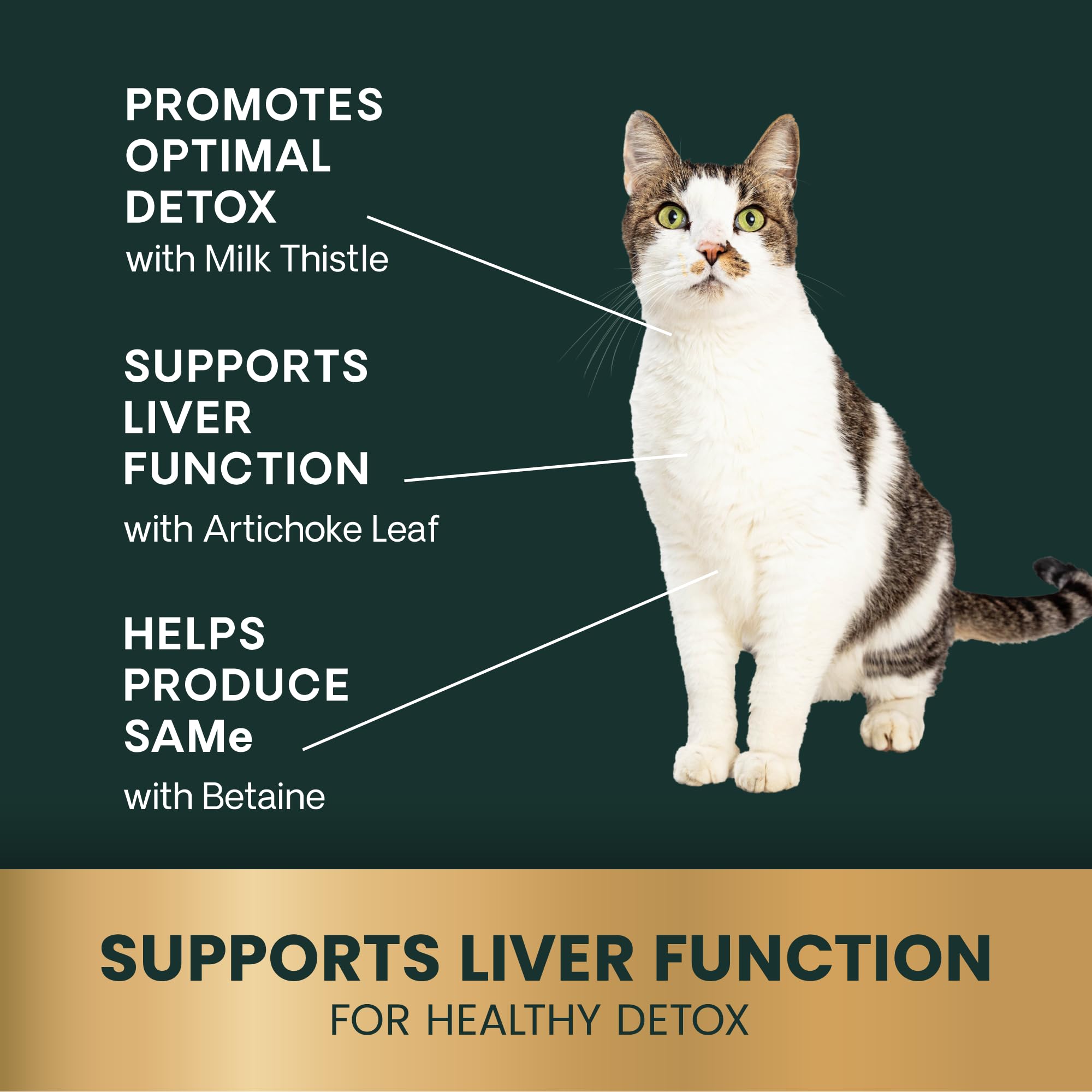 MILK THISTLE PLUS TARGETED HERBS: This cat liver support supplement features milk thistle with turmeric and artichoke leaf extract to support the liver’s normal detox process, healthy bile flow, and daily organ function for cats needing ongoing liver support.