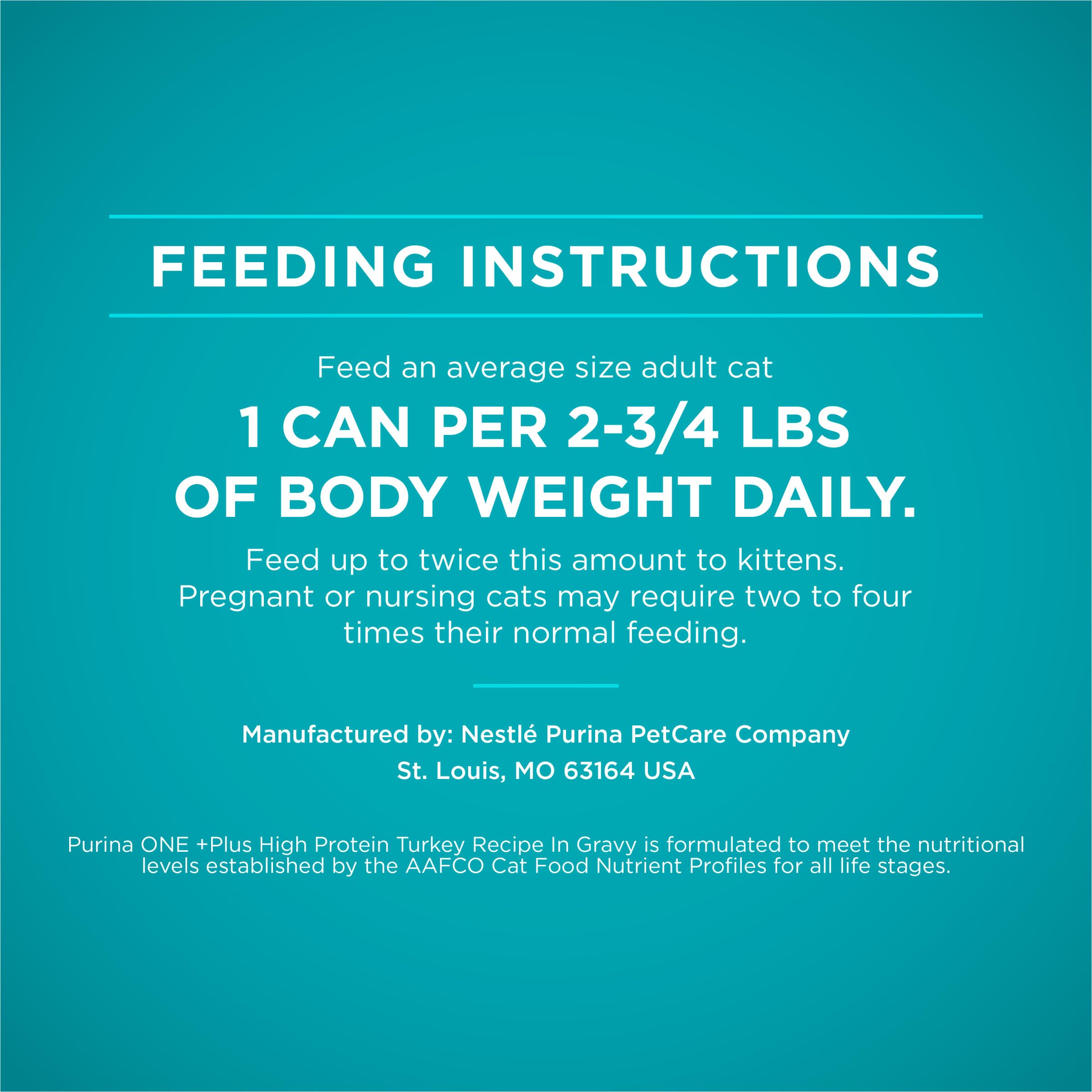 Serve up a delicious meal crafted for cats with Purina ONE True Instinct Natural Turkey Recipe in Gravy wet cat food with added vitamins, nutrients and minerals. This delectable wet food for cats meets all of your feline's nutritional needs. There's real turkey in every serving, so you can both feel good about what's in your cat's dish. This high protein cat food feeds your cat's natural instincts. Plus, the moisture-rich gravy cat food helps support healthy hydration. You can take comfort knowing she's getting 100 percent complete and balanced nutrition for all life stages. Plus, she's getting a natural cat food formula with added vitamins, minerals and nutrients. With an enticing texture and high-quality, purposeful ingredients, this Purina ONE True Instinct cat food wet gravy recipe shows your cat just how important she is to you. For even more delicious goodness, explore the complete line of Purina ONE dry and wet cat foods, and let her choose the taste combinations she loves best.